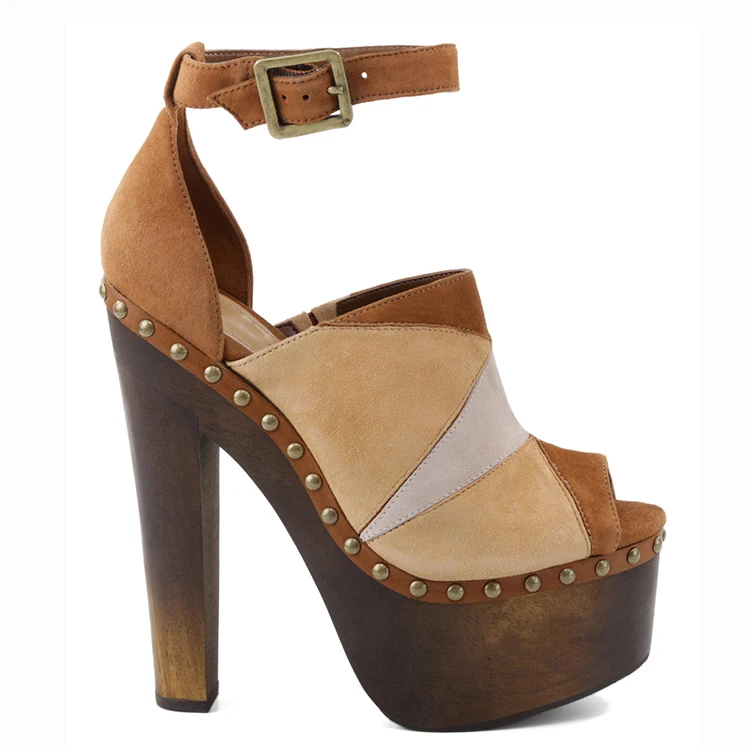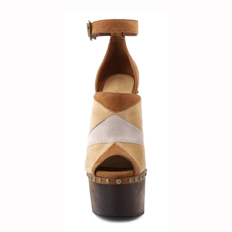 Women Platform Sandals Suede Multi Tone Stud Accents Block Heel Spring Summer Fashion Beach Party Comfort Shoes Wholesale