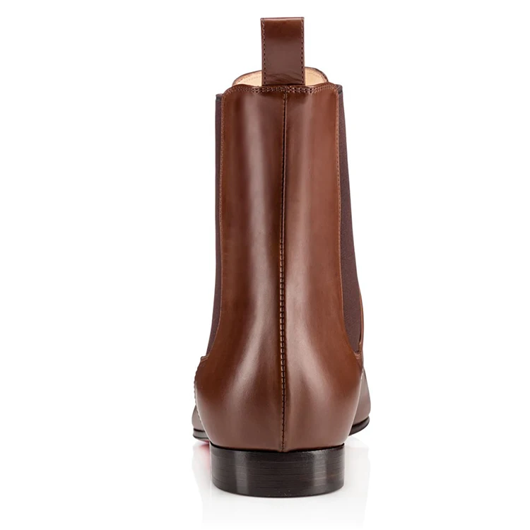 Brown Leather Chelsea Boots Flat Heel Elastic Side Waterproof Fashion New Design Dress Casual Comfort Ankle Boots Wholesale