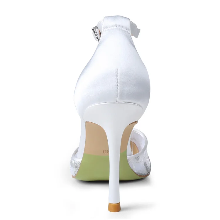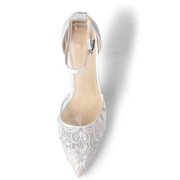 Women Pumps Pointed Toe Shoes comfort Heeled Sandals White Lace Ladies Heels 2021 Wedding Bridal Dress Shoes