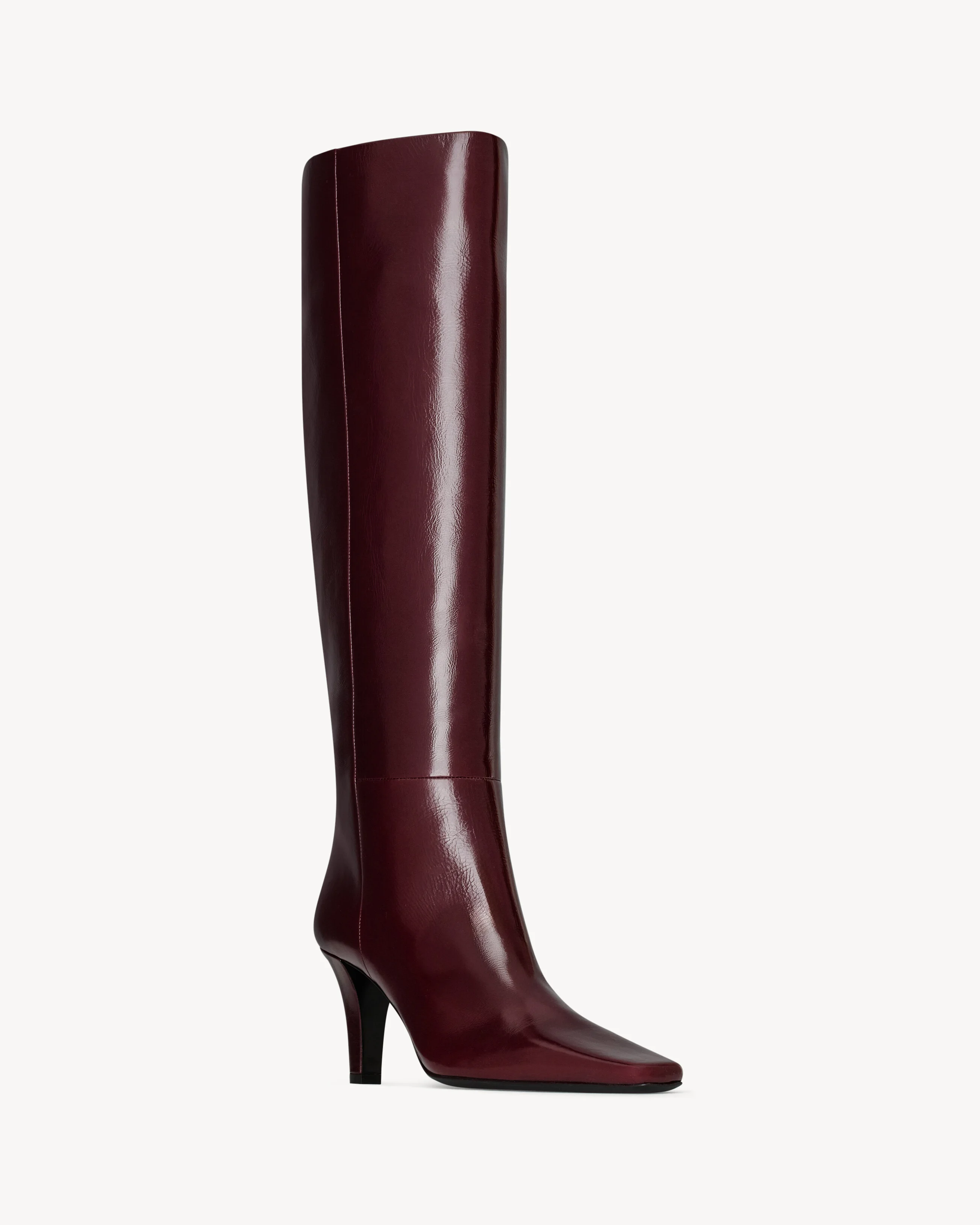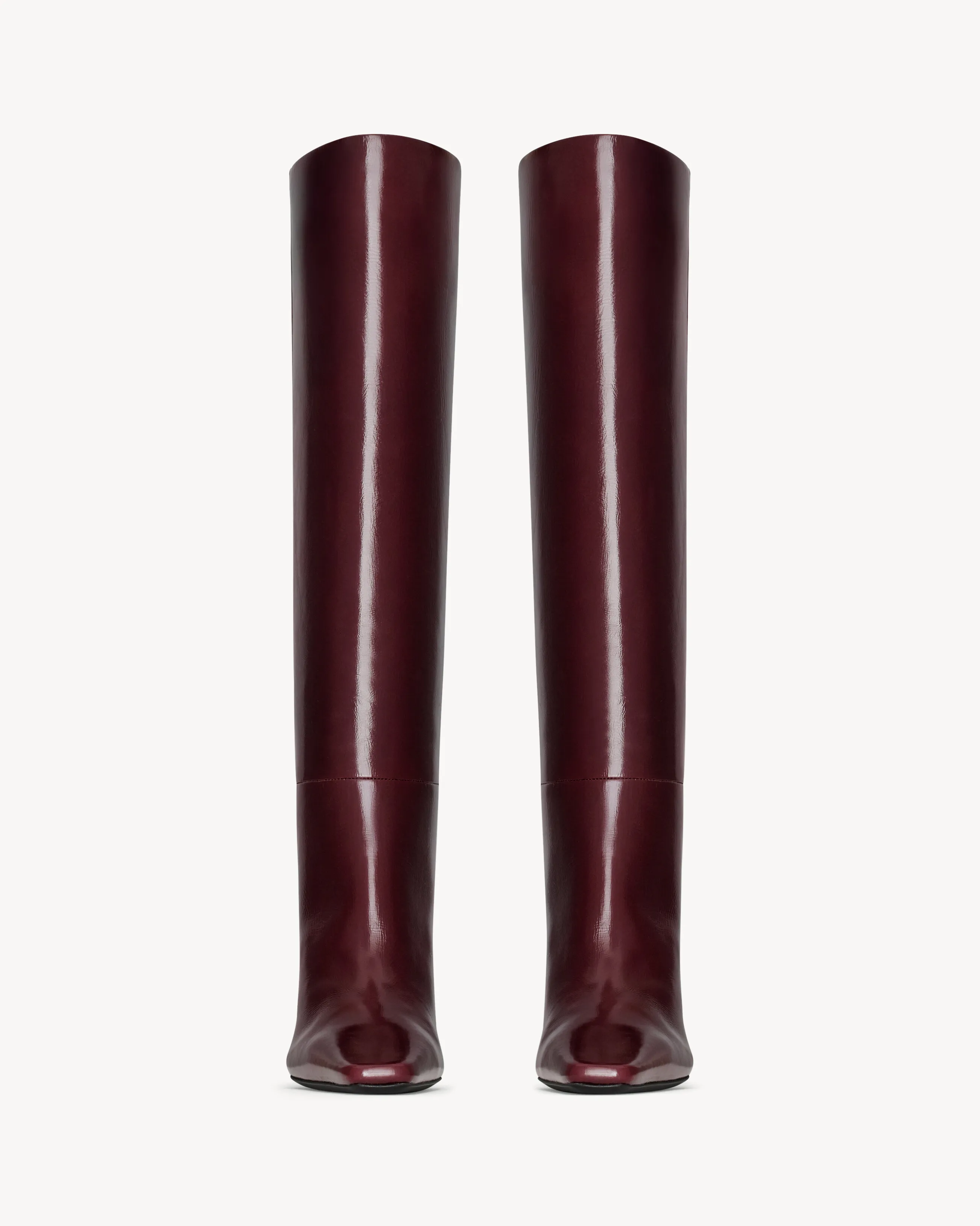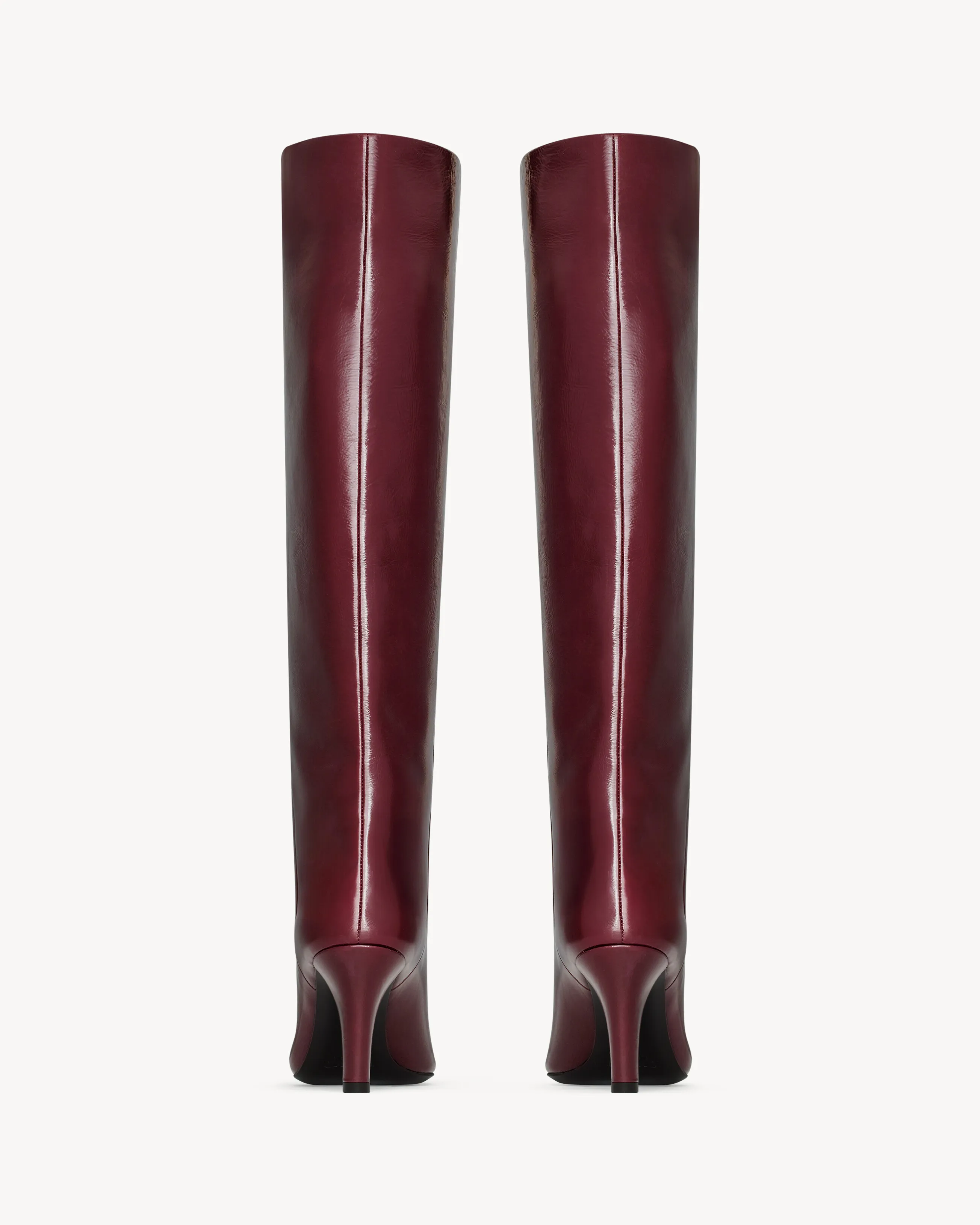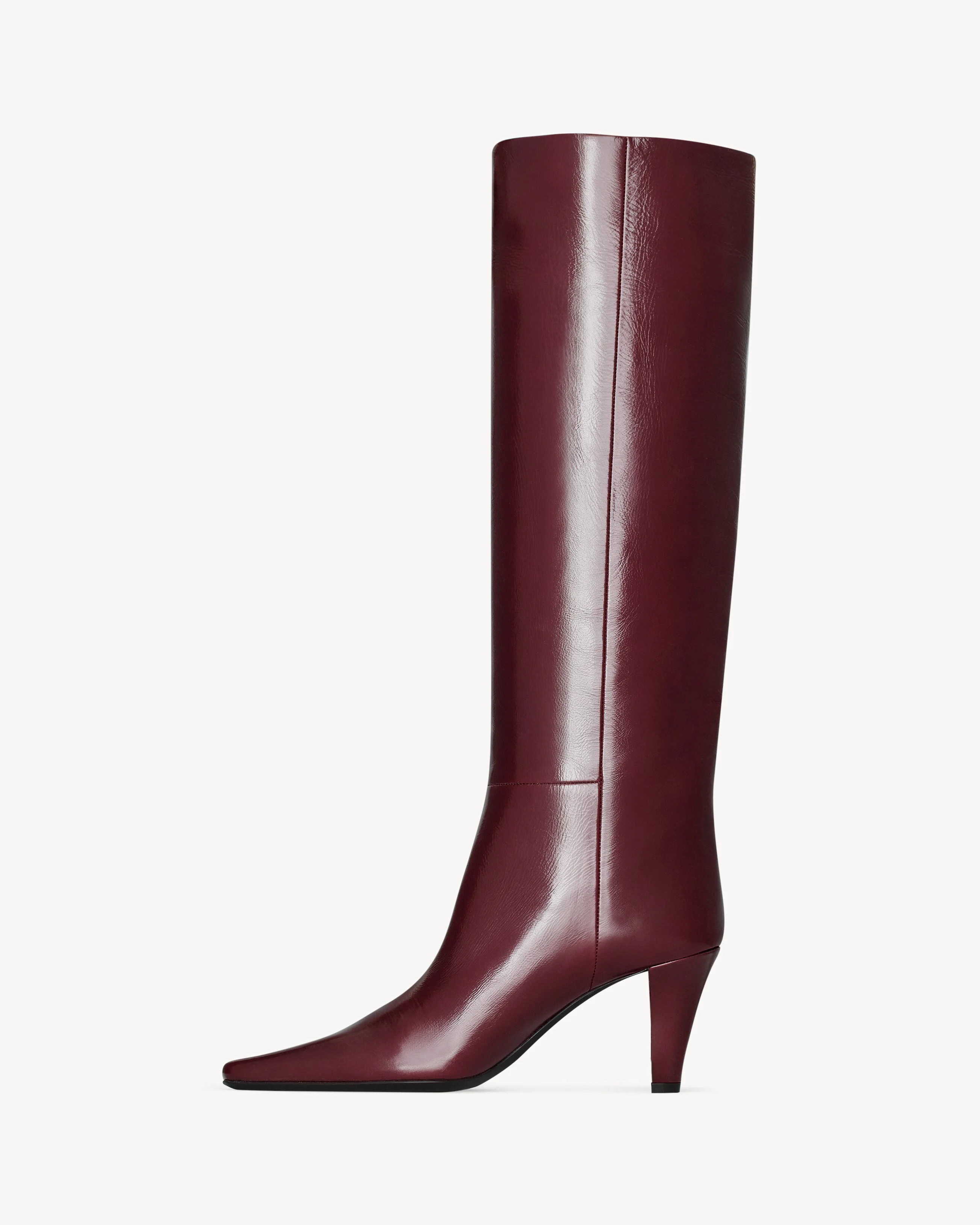 Luxury Factory Direct Women Burgundy Patent Leather Boots Knee High Pointed Toe Custom Logo Winter Fashion Wholesale OEM ODM