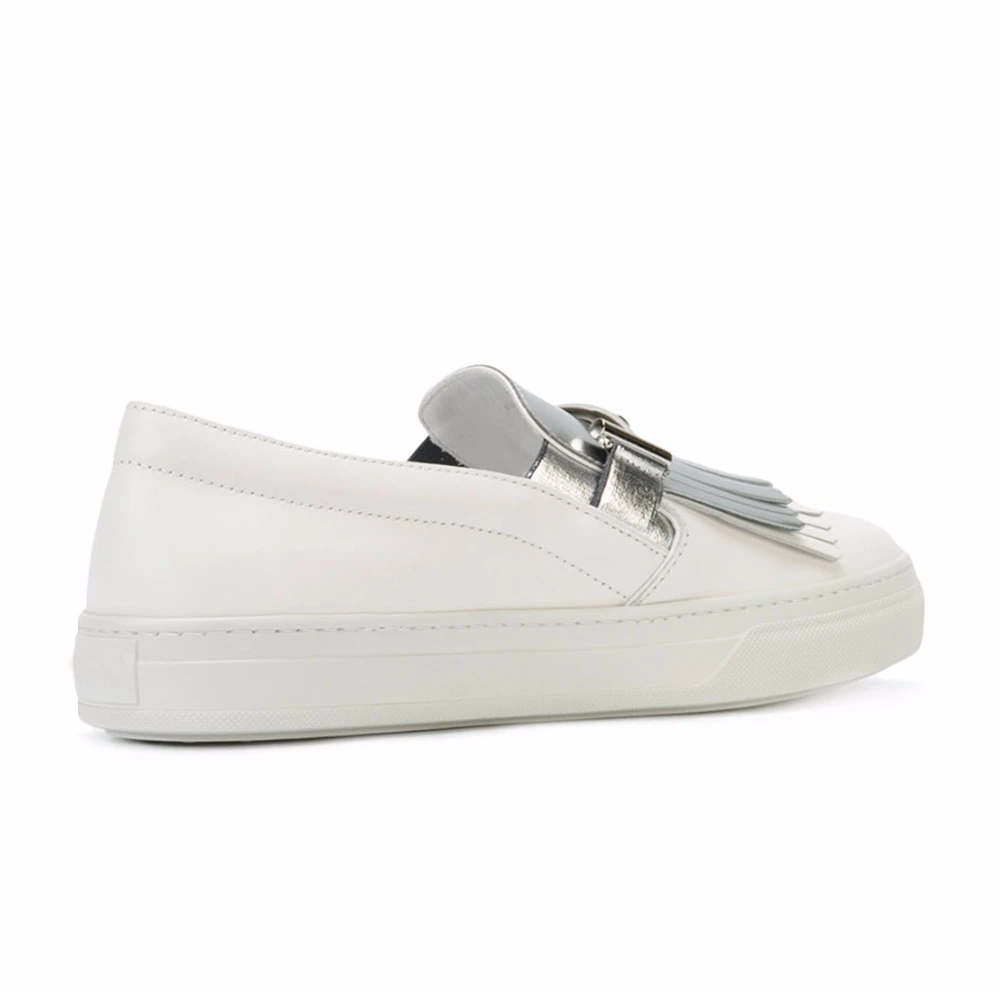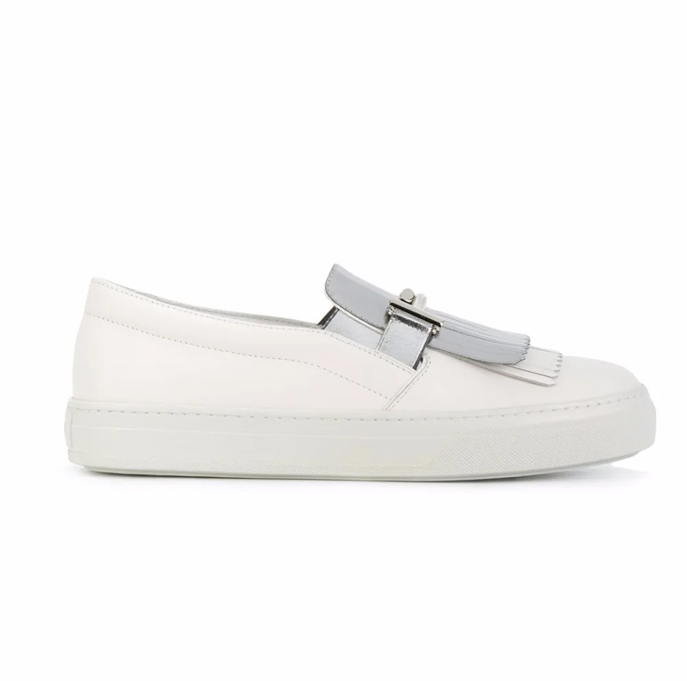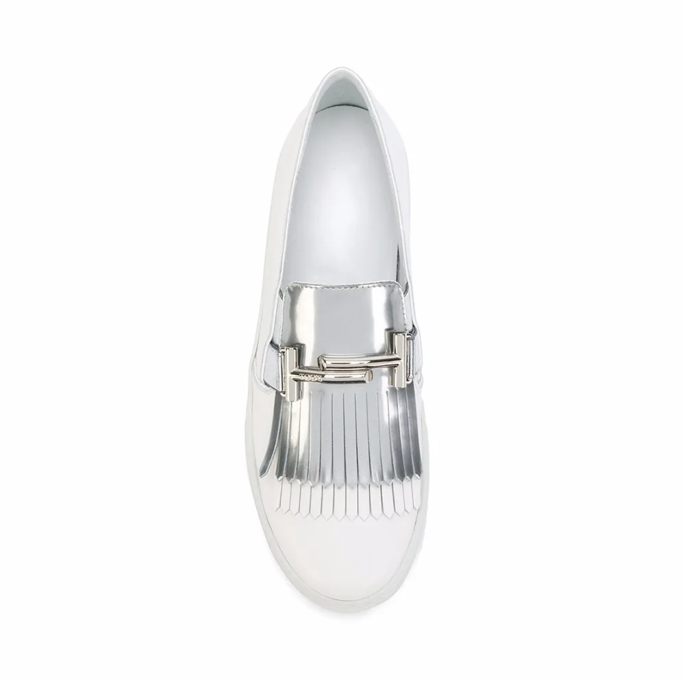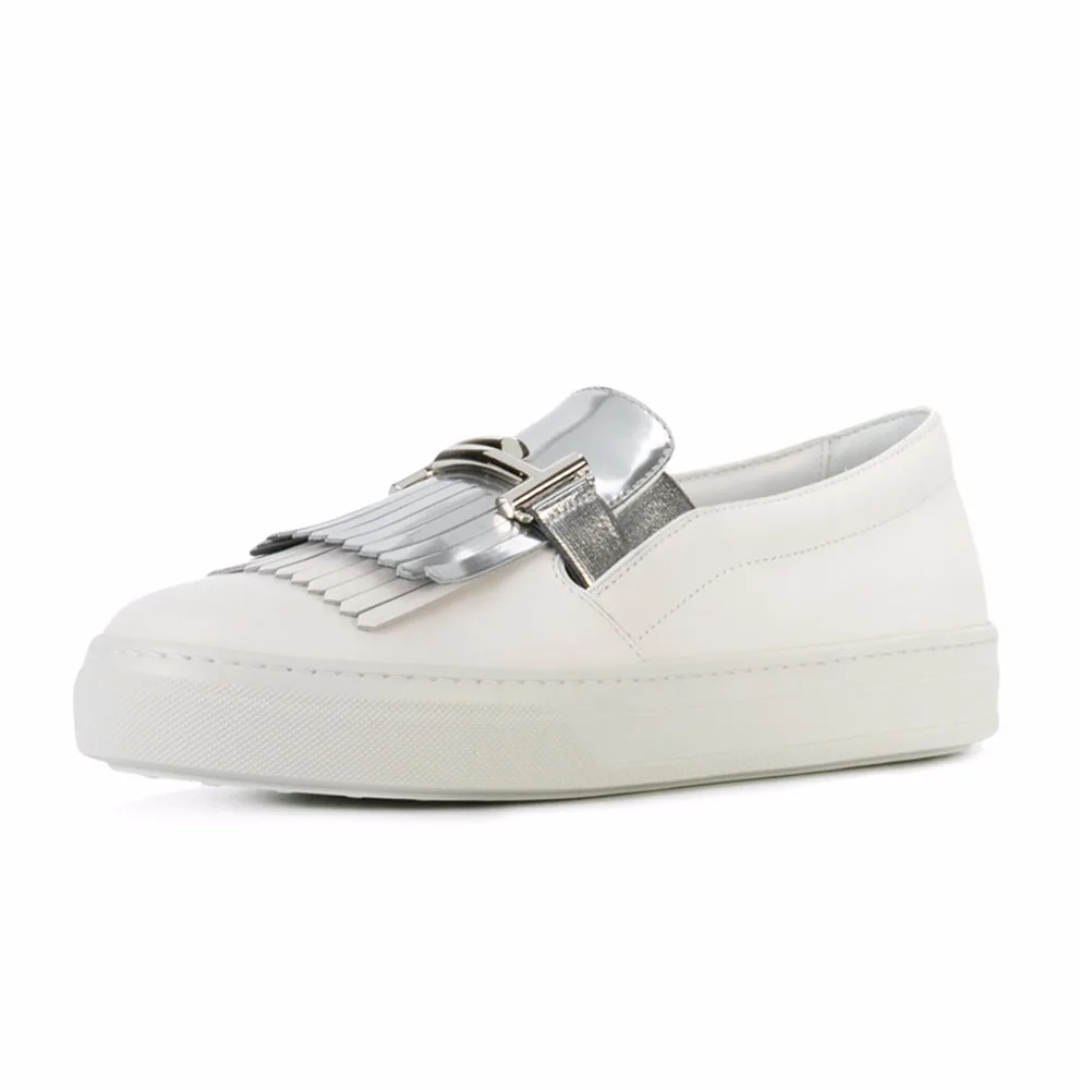 Women White Leather Platform Metallic Fringe Accent Light Luxury Casual Daily Office Shopping Comfort Versatile Shoes Wholesale