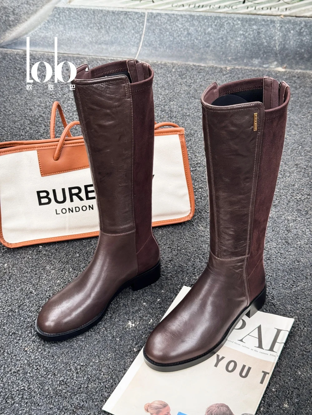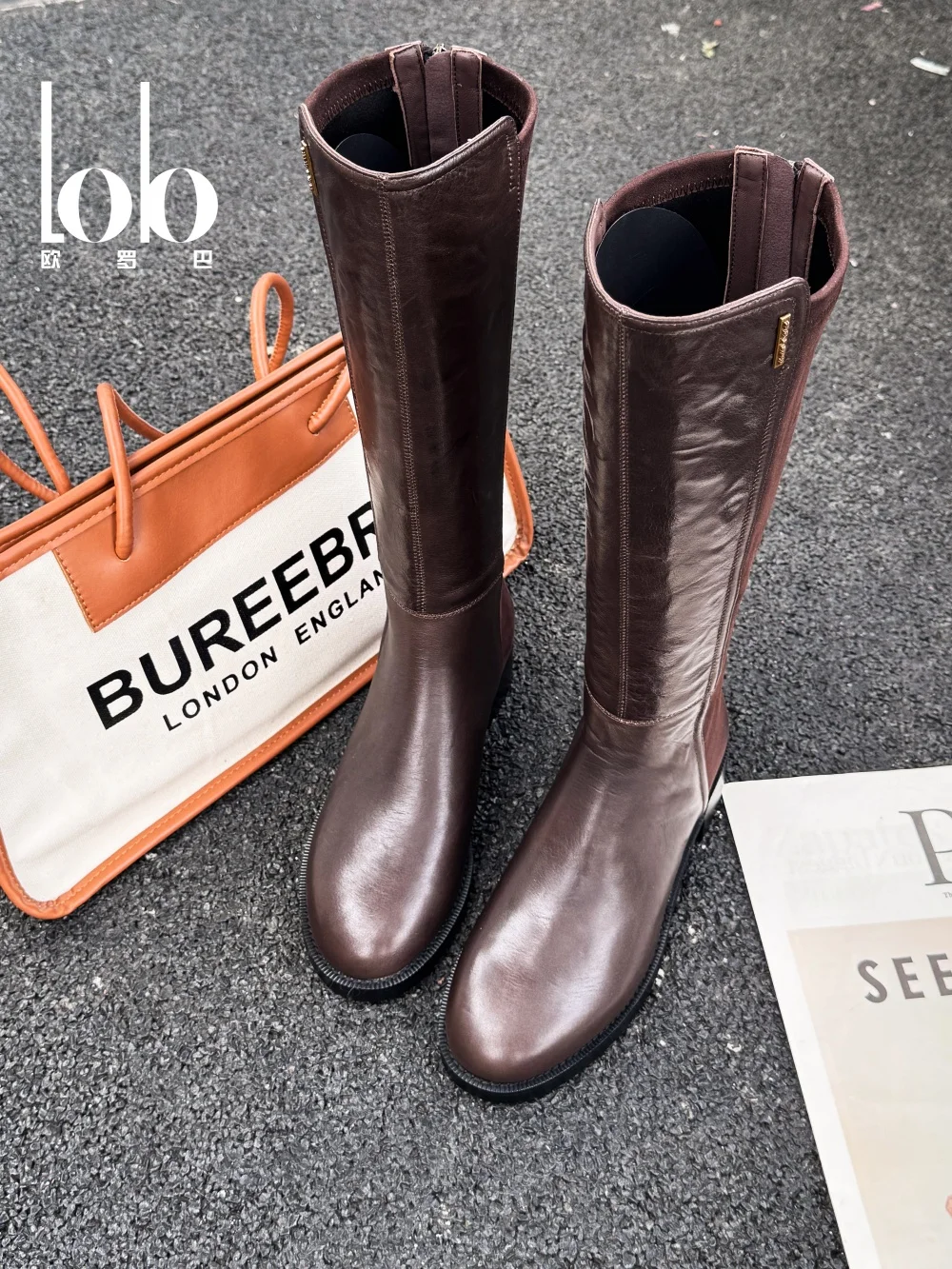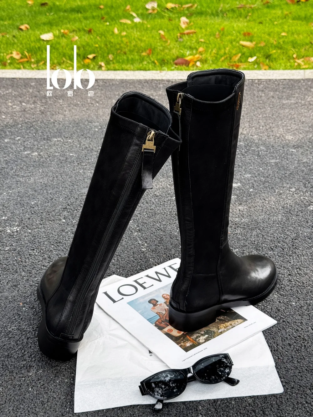 Women's High-end Black Genuine Leather Unique Platform Back Zipper Casual Western Knee High Women's Shoes Ladies Fashion Boots