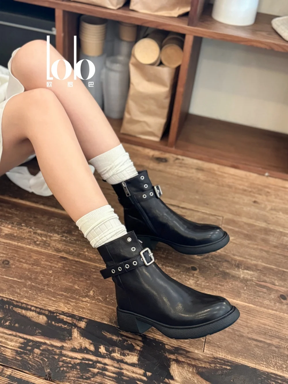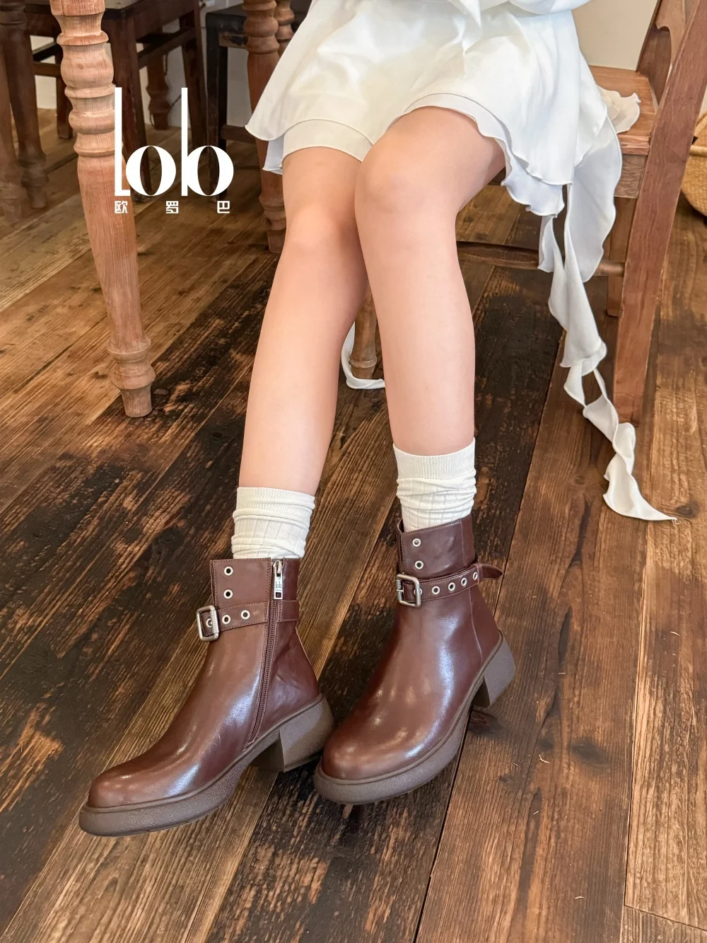 Women's Retro Ankle Boots with Solid Leather Design for Elevated Height, Featuring Fashionable Autumn and Winter Women's Shoes