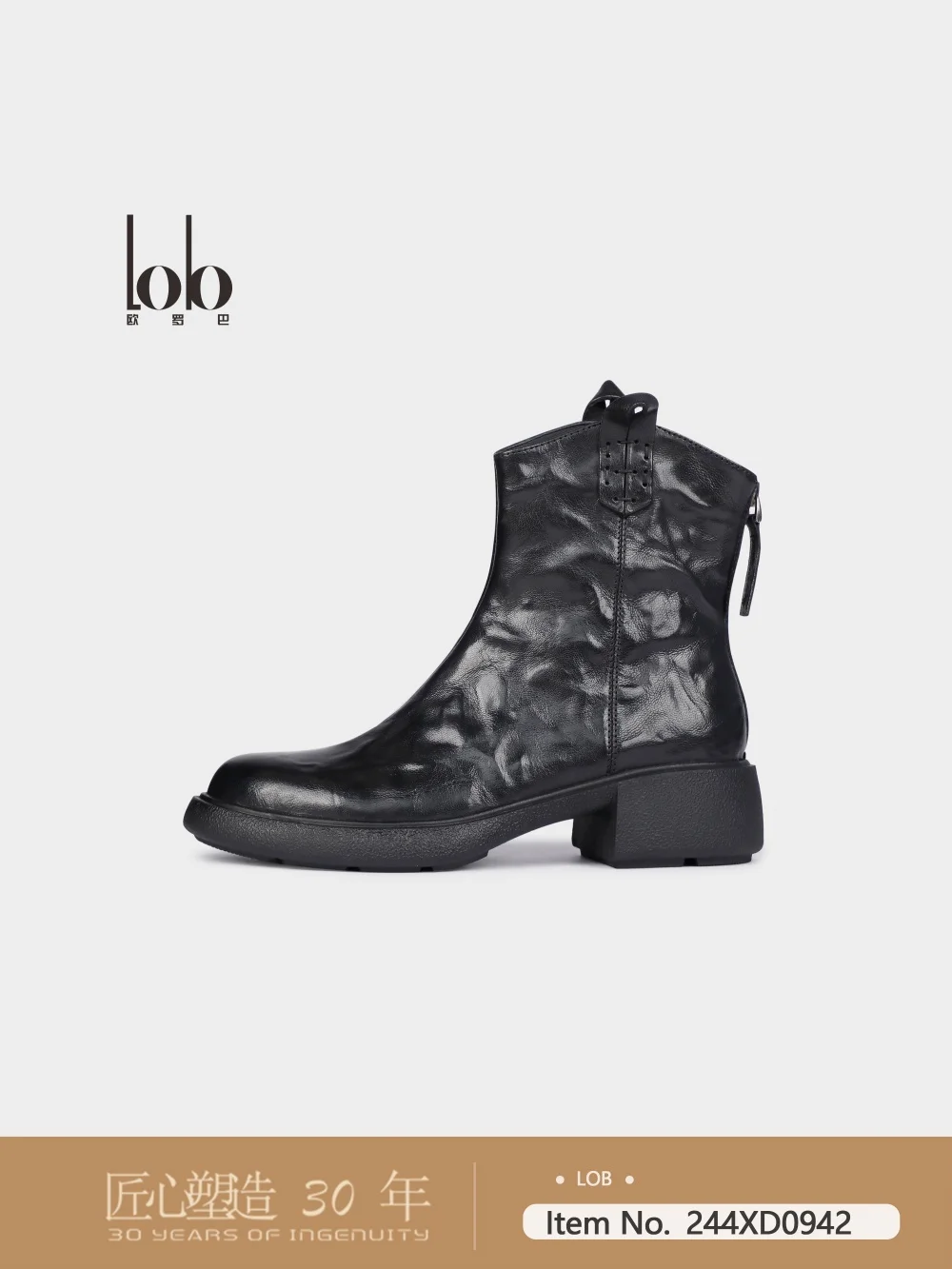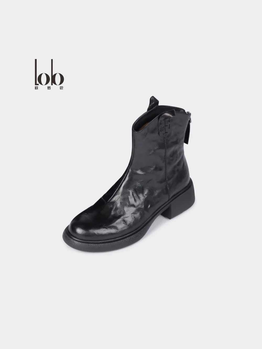 Genuine Leather Women's Chelsea Boots, V-shaped Thick Heel, Zipper Closure, Comfortable Women's Shoes
