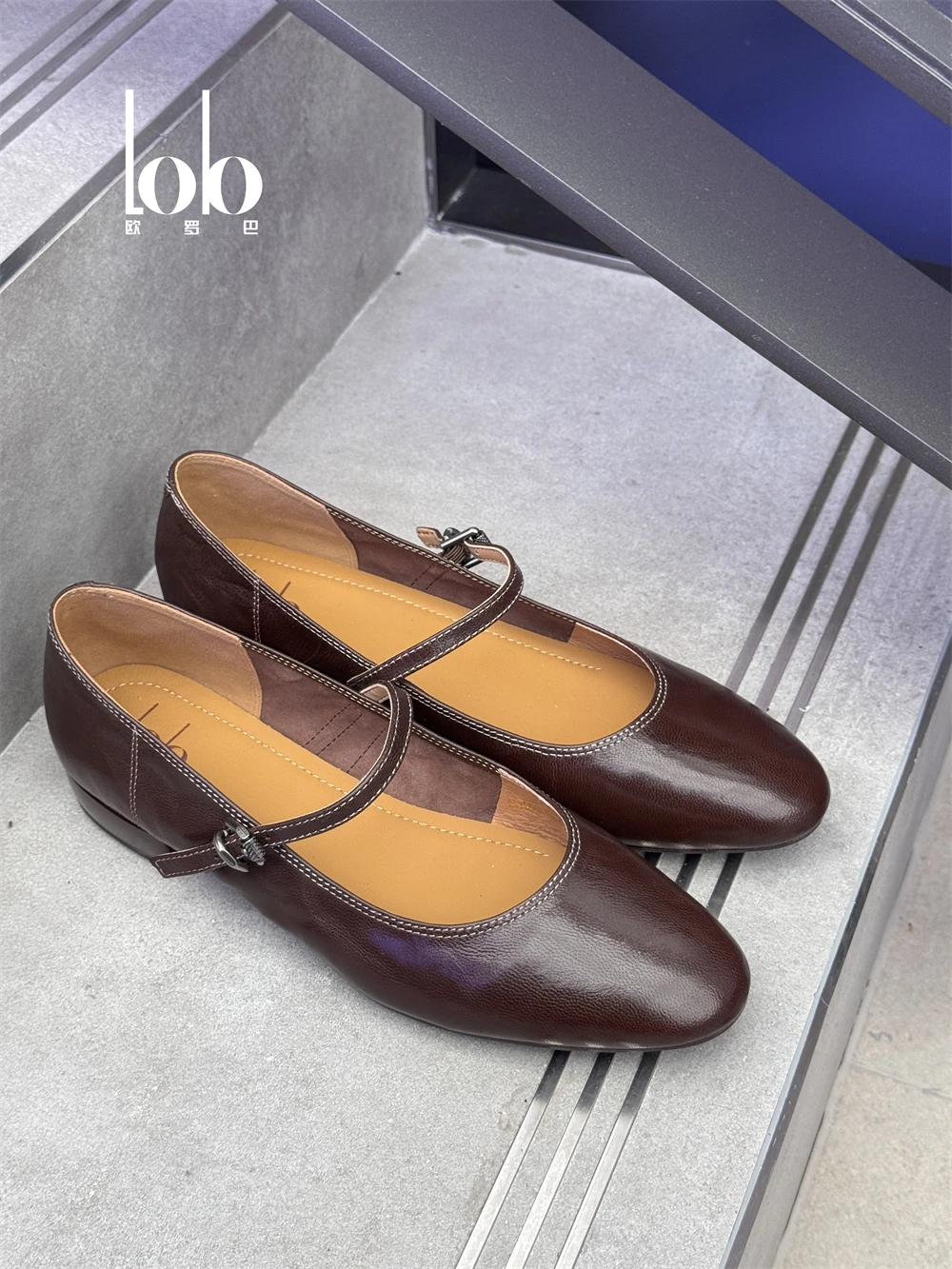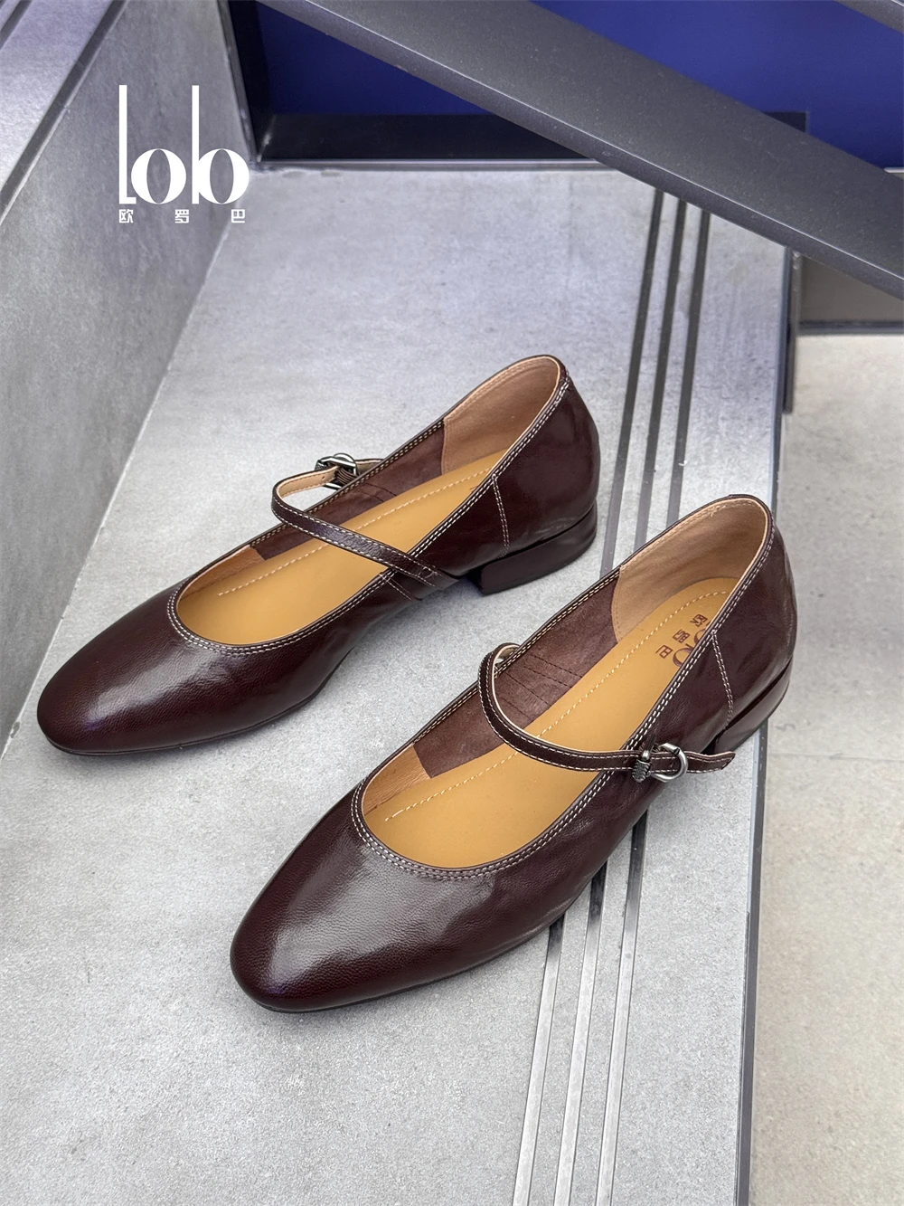 Women's Genuine Leather Flat Shoes Low Block Heel Design Mary Jane Style Breathable Customizable for Autumn Factory Direct Sales