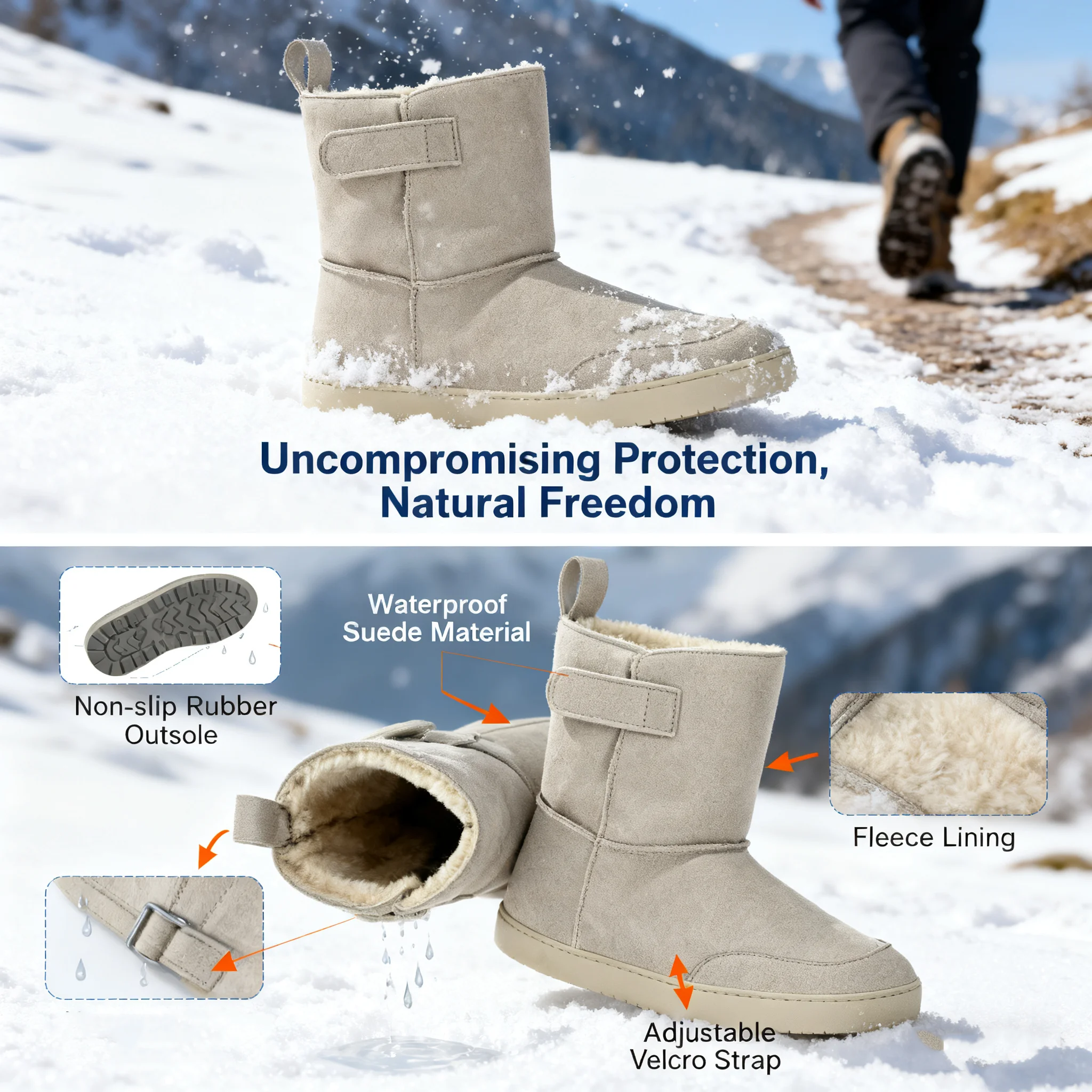 Custom logo Outdoor Walking Barefoot Shoes Men Kids Wide Toe Box Snow Boots Basic Waterproof Warm Winter Boots for Men Women OEM