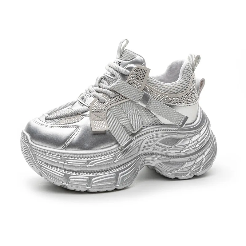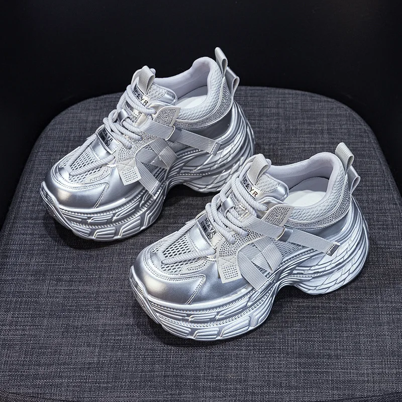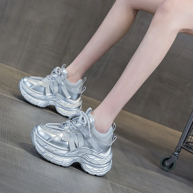 High Quality Thick Soled 9CM Women's Shoes, Women's 2026 Spring/summer New Mesh Rhinestone Casual Sports Shoes