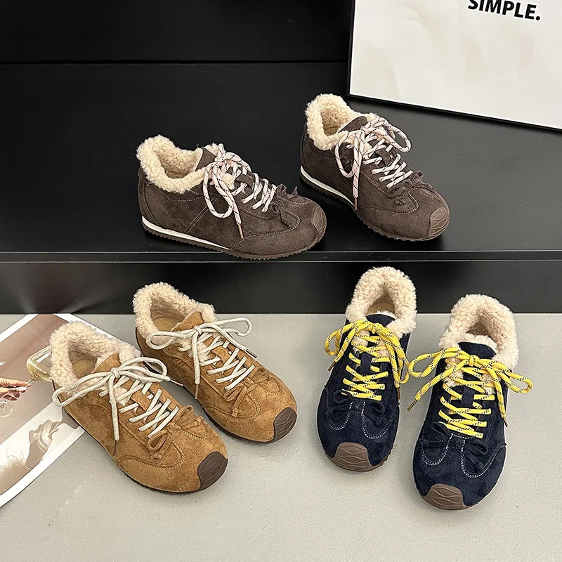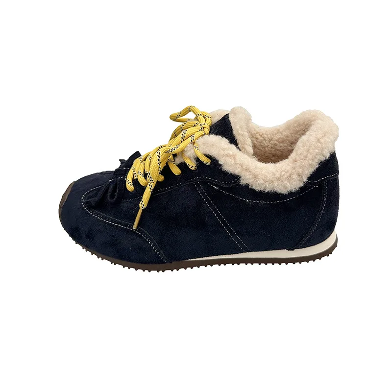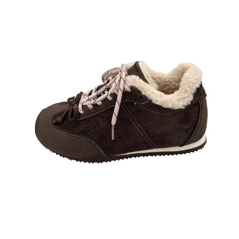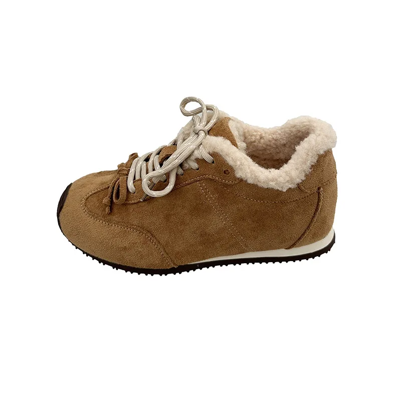 Wholesale winter fashion design warm shoes customized 5CM internal height increasing butterfly bow with plush training shoes