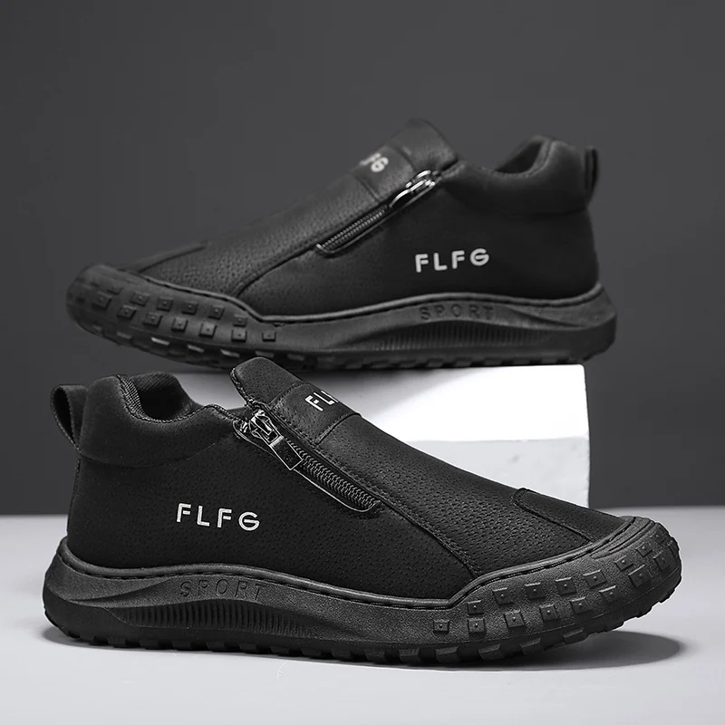Men's High-top Leather Hiking Shoes, Outdoor Anti-slip, Wear-resistant, Breathable Lace-up Shoes, Sports Shoes, Casual Shoes