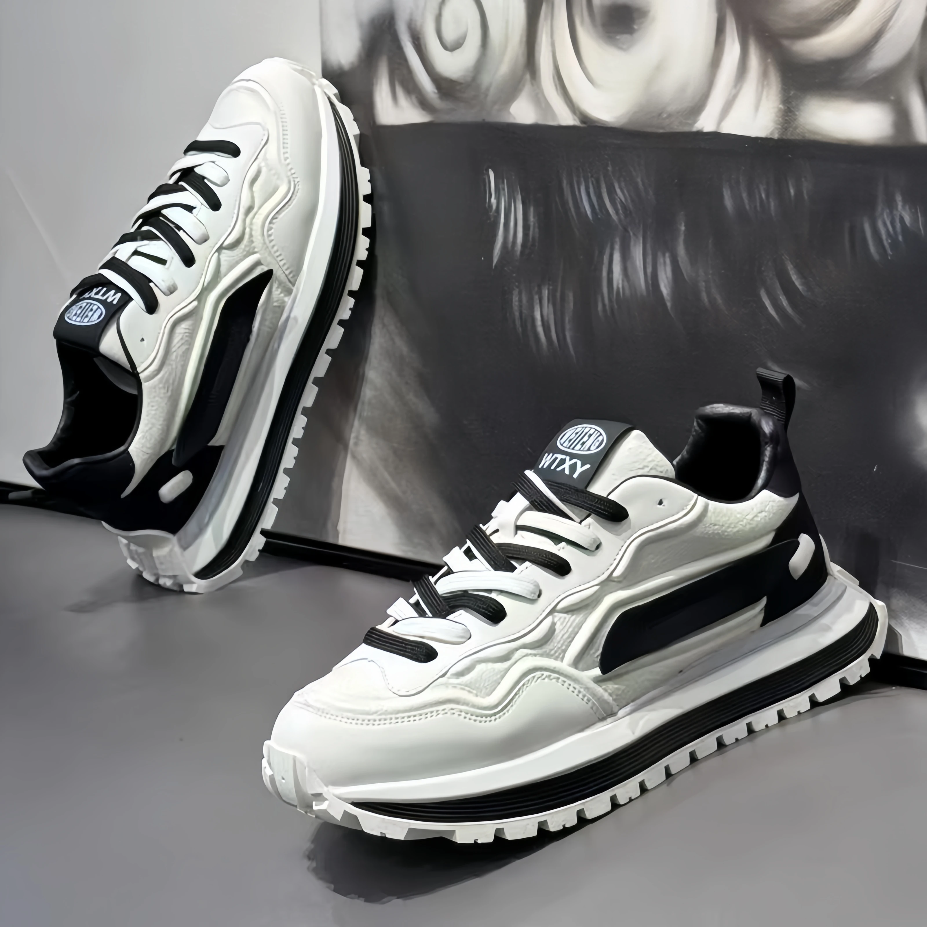 New Breathable Casual Sports Shoes Versatile Thick Soled Comfortable and Wear-resistant Lightweight Lace-up Mens Trendy Shoes