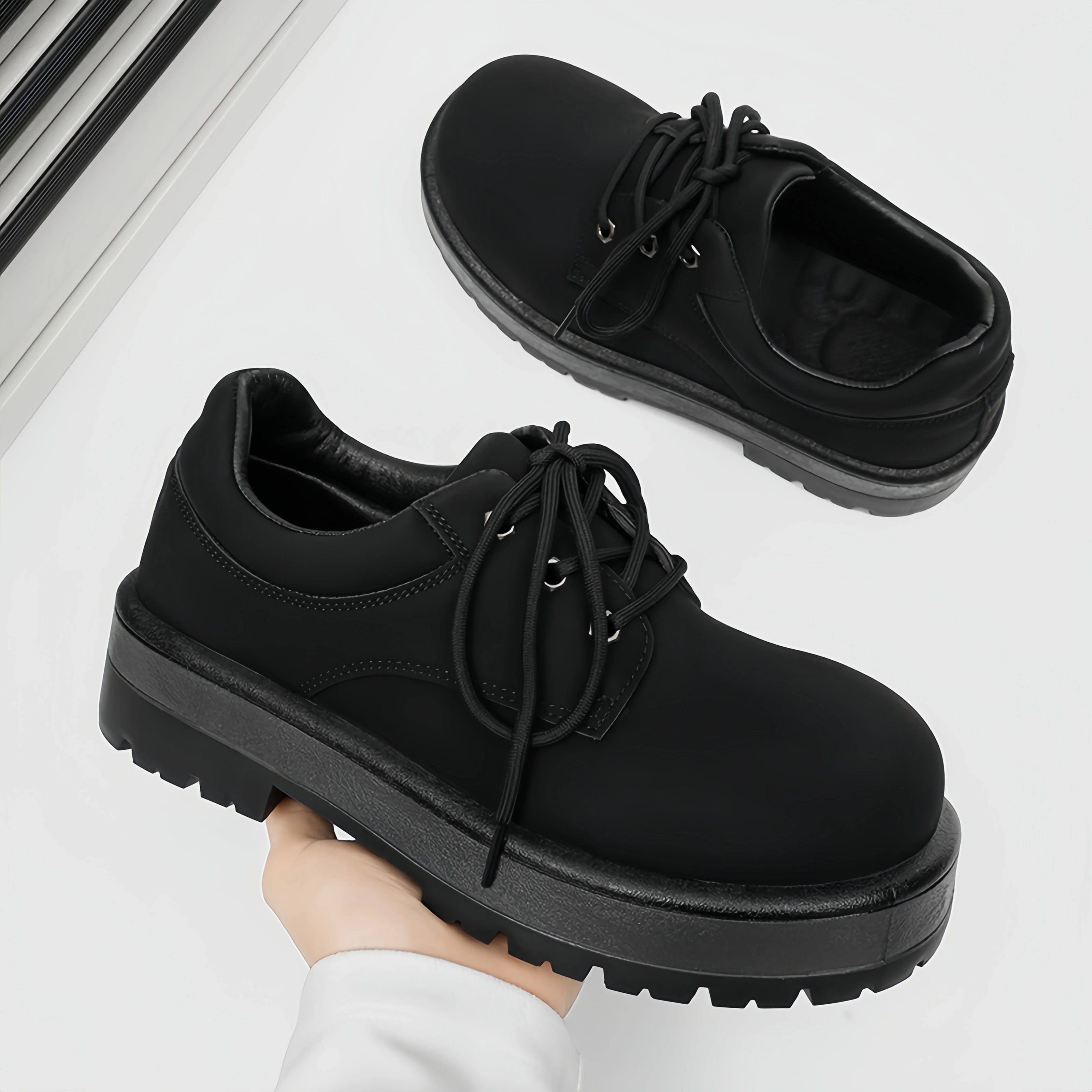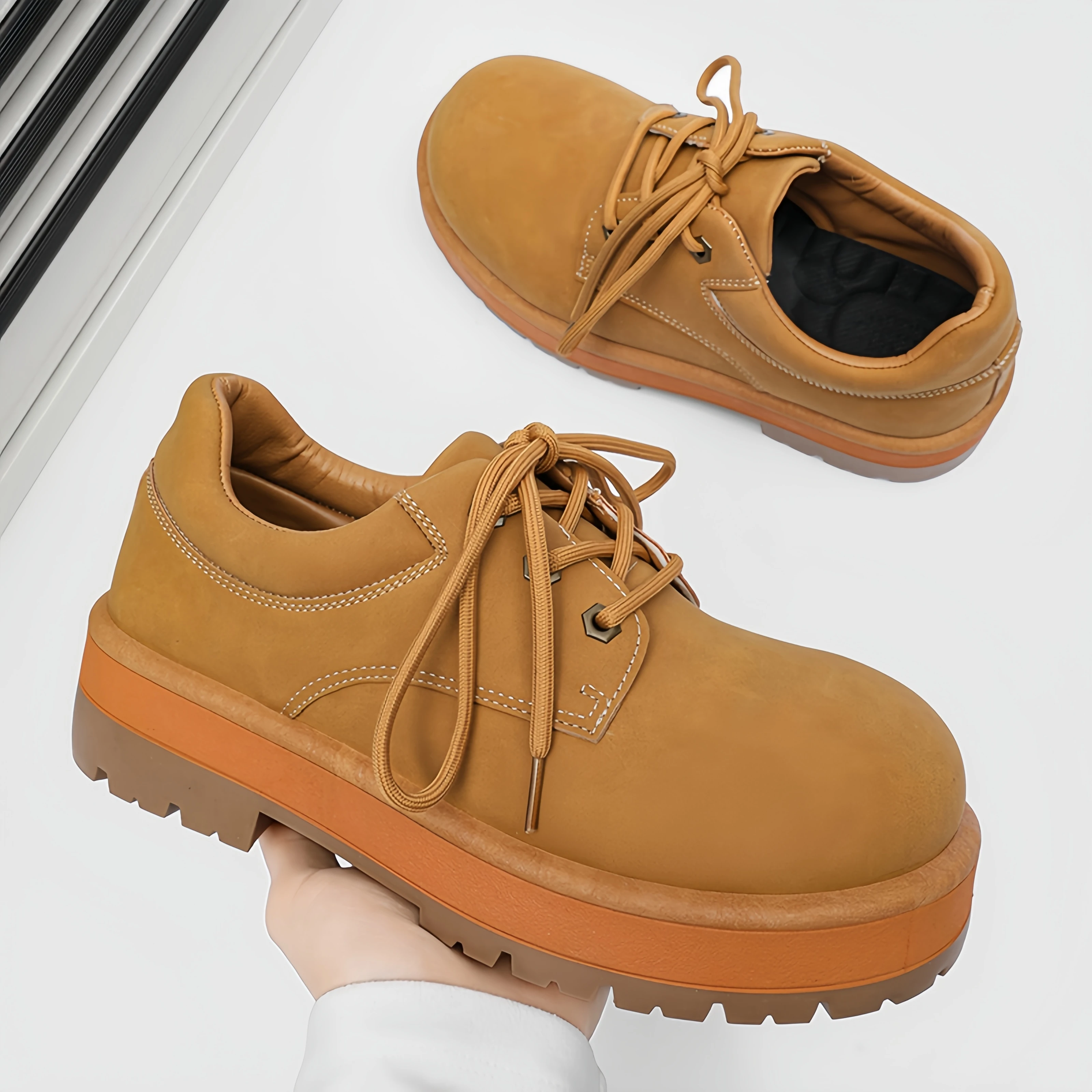 Derby Shoes 2026 New Autumn Low-top for Boots Men's Retro Work Thick-soled Height-increasing Breathable Lace-up