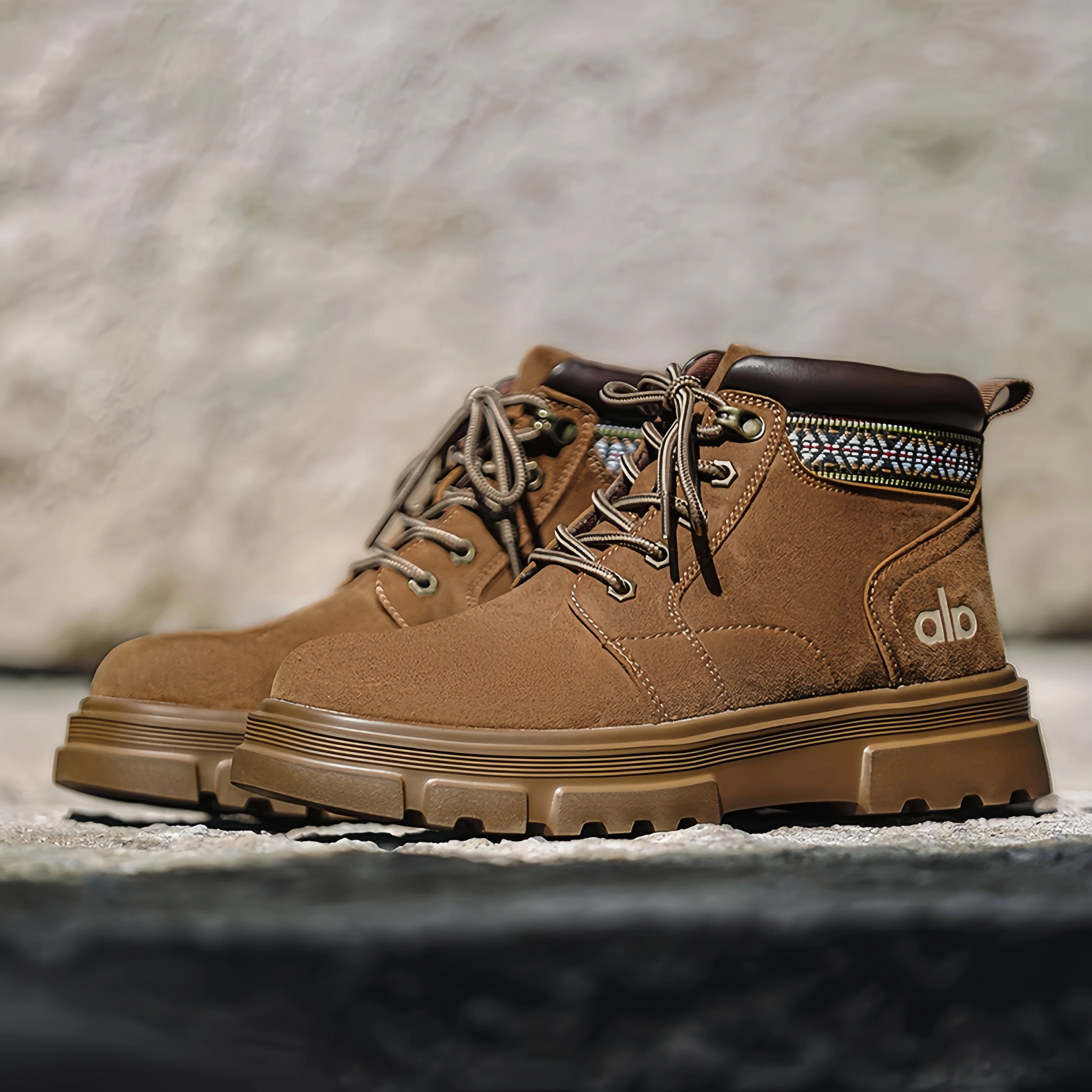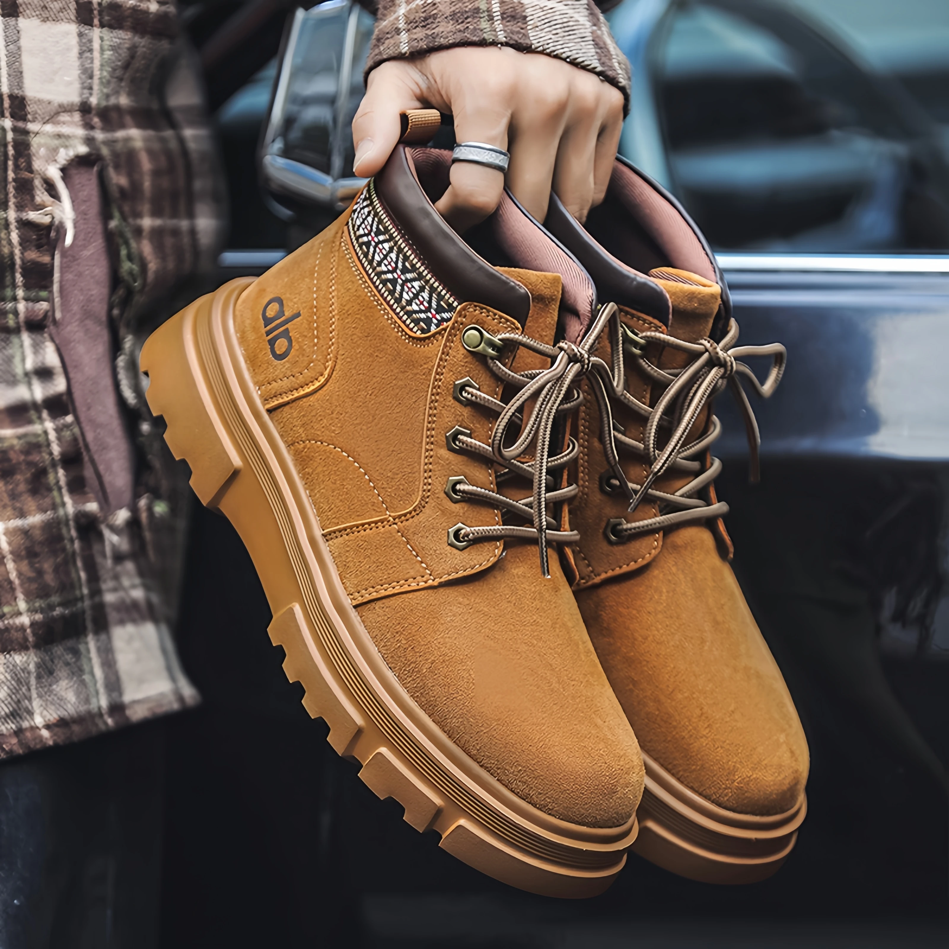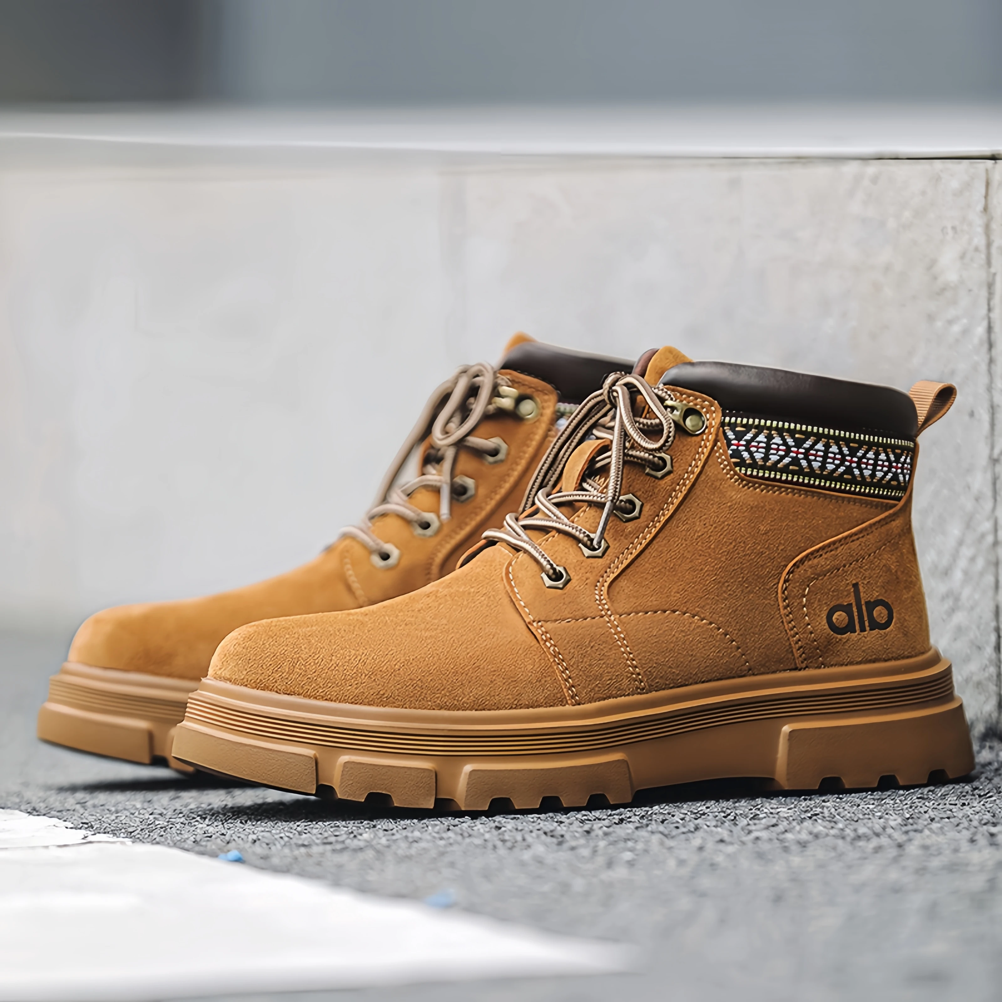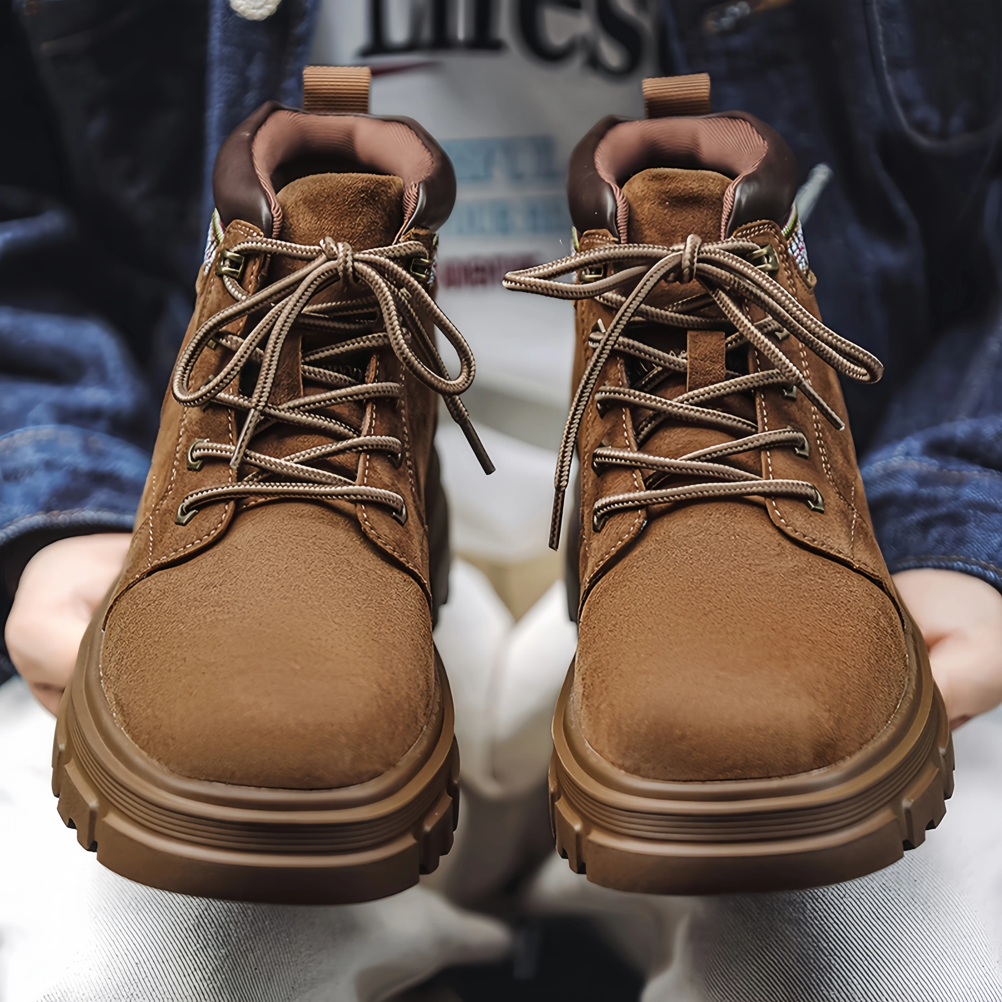 Men's British Style Workwear Boots Autumn High Top Waterproof Leather Lace-Up Wear-Resisting Versatile Casual Trend Shoes