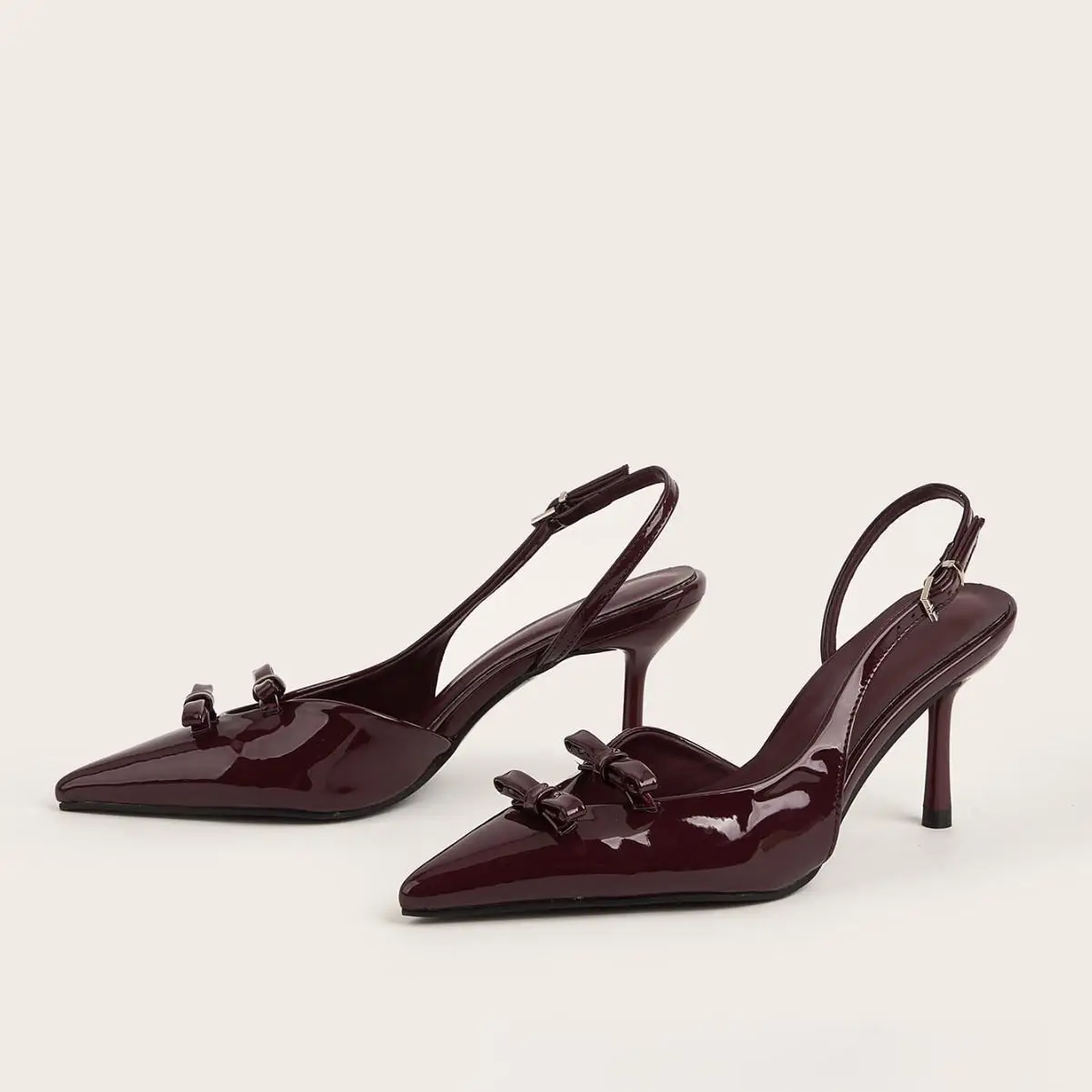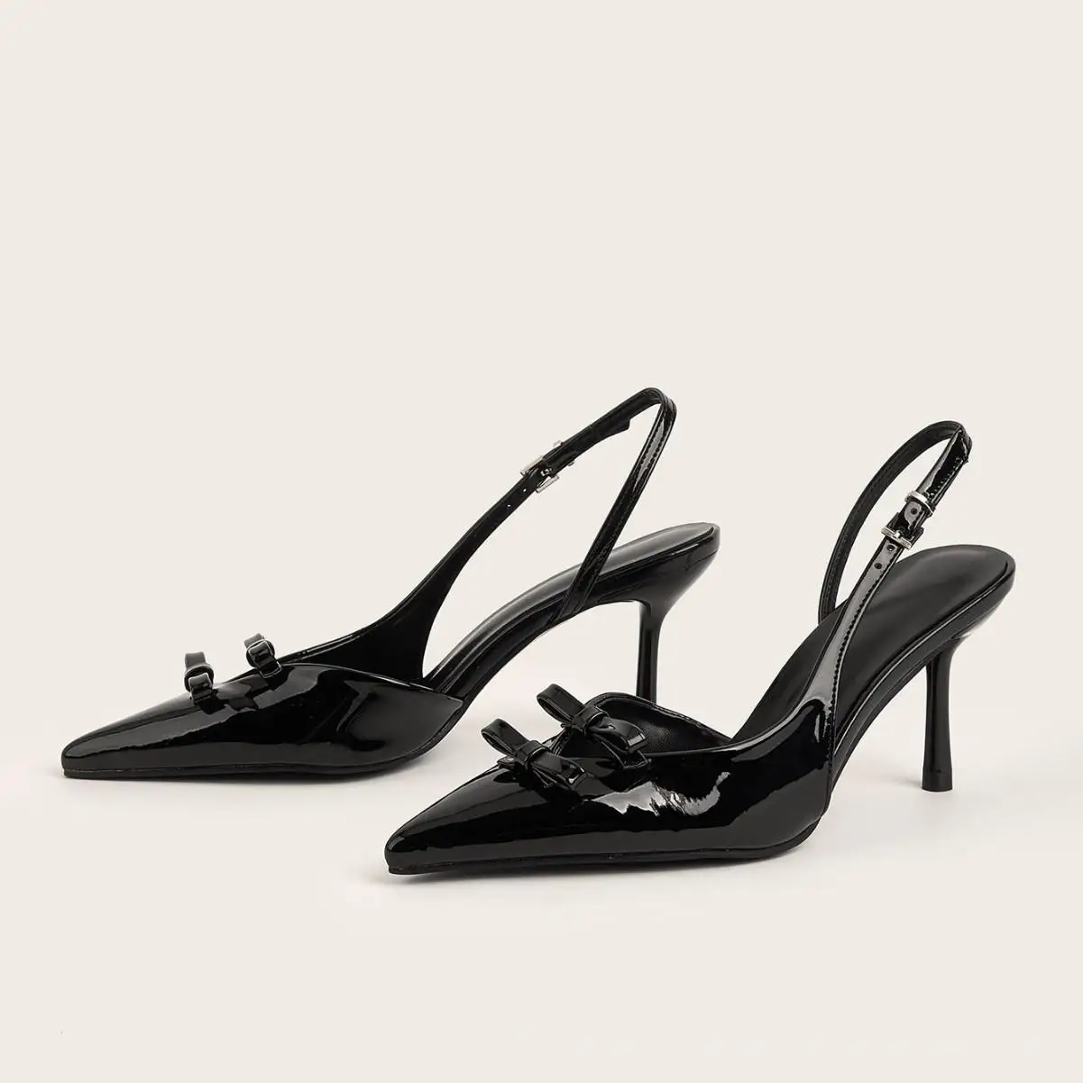 BUSY GIRL CXX186 Women's Black Patent Leather Pointed Toe Slingback High Heel Shoes with Bow for Party and Formal Office