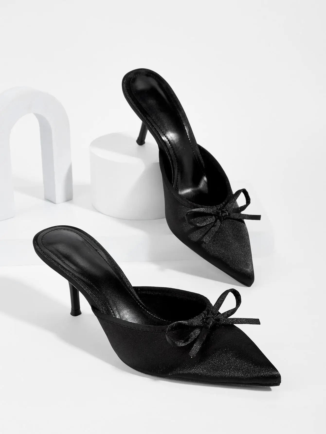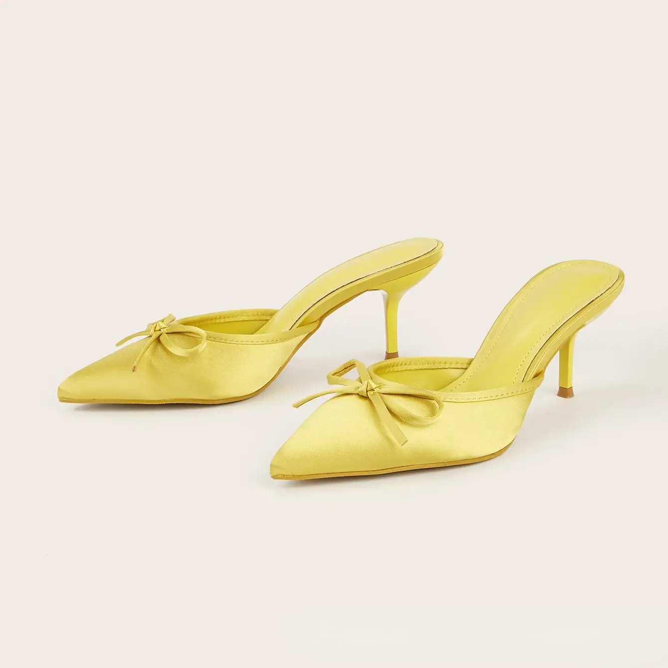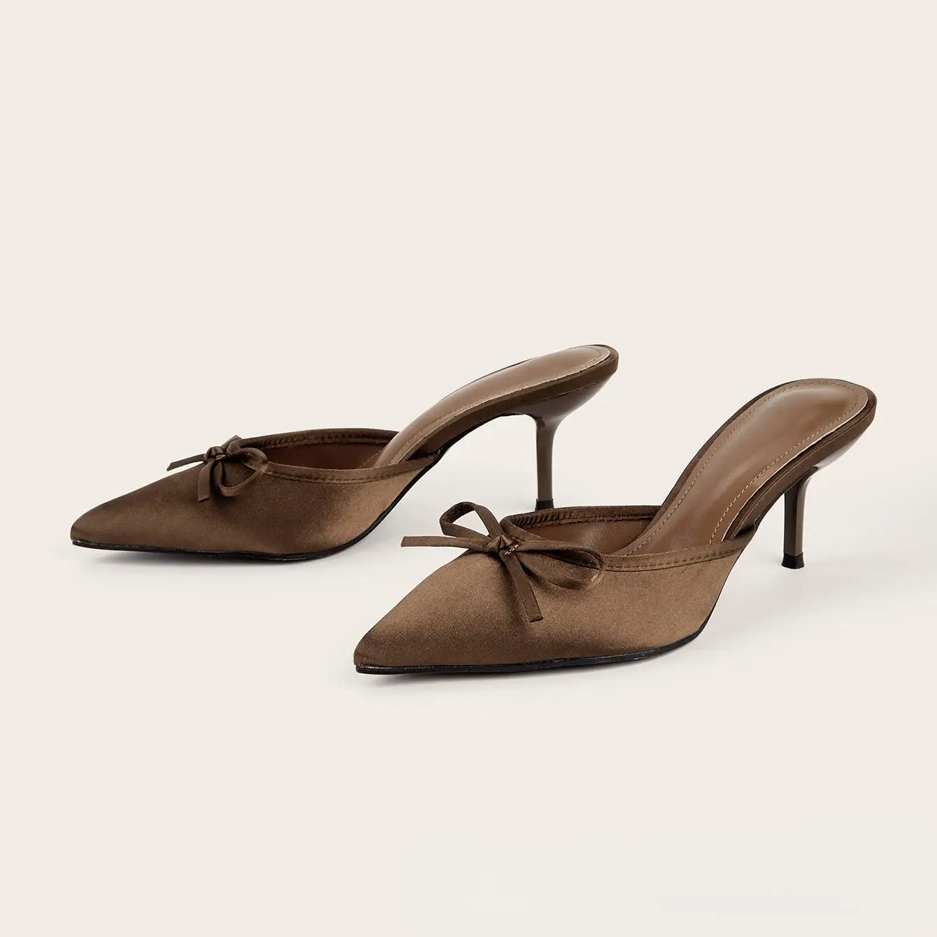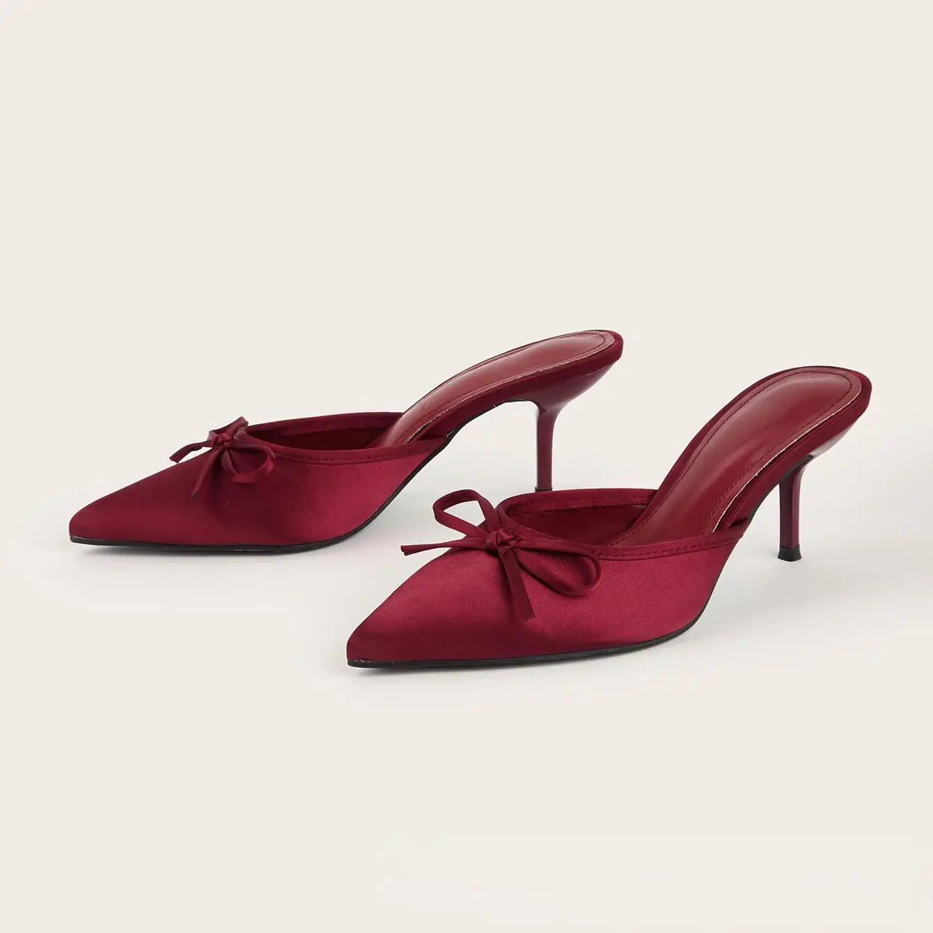 BUSY GIRL CXX190 Women's Shoes 2026 Summer New Arrival Pointed Toe Wine Red Satin Bow High Heel Shallow Mouth Women Sandals