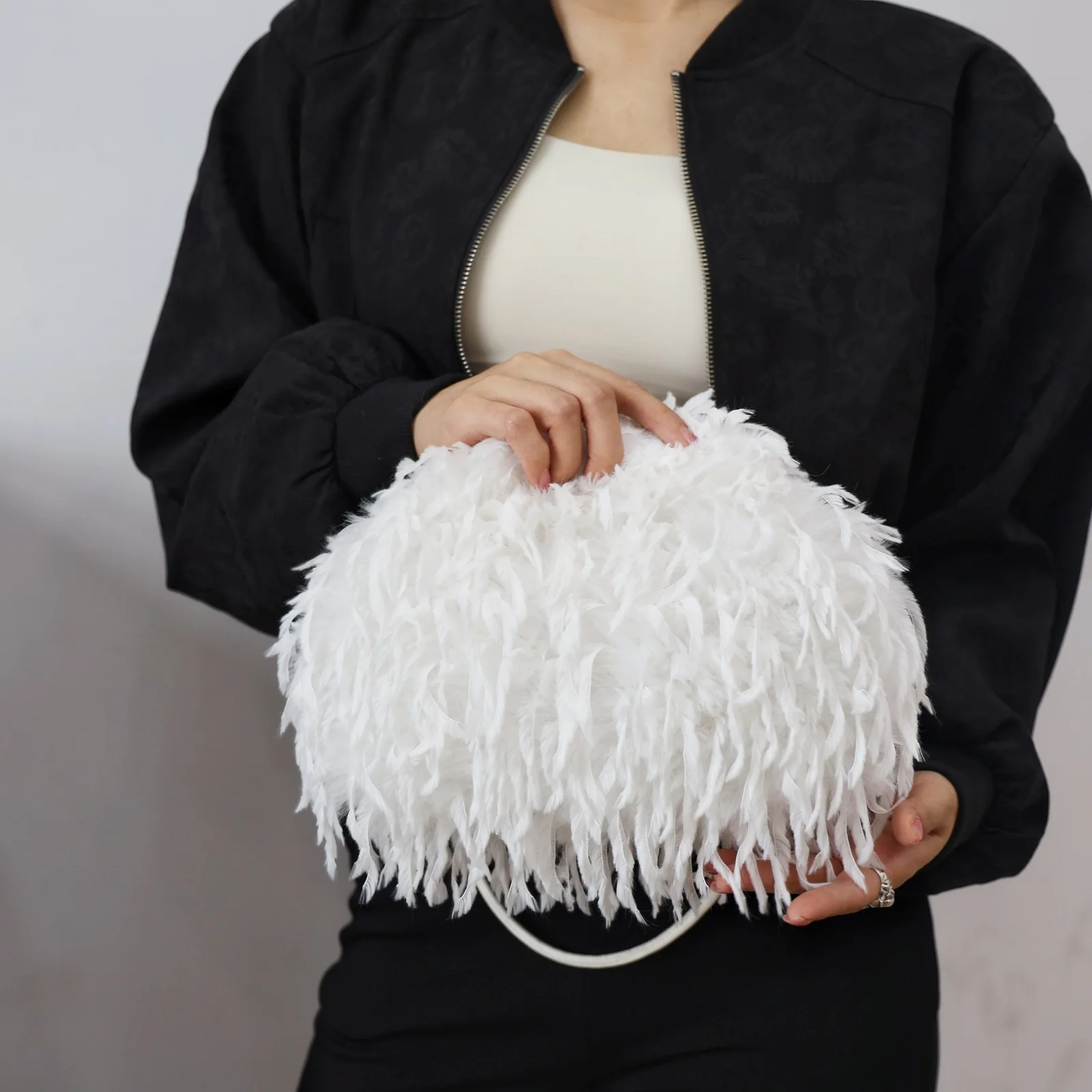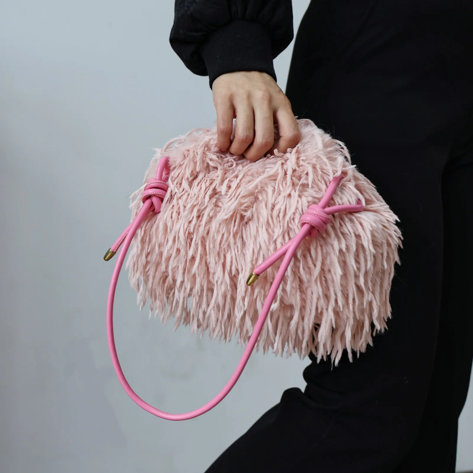 BUSY GIRL RS1019 Custom Bags Furry Bag for Women Feather Cloud Bag Pink Underarm Bag Pleated Clutch Bag Plush fairy Bag Fur Bag