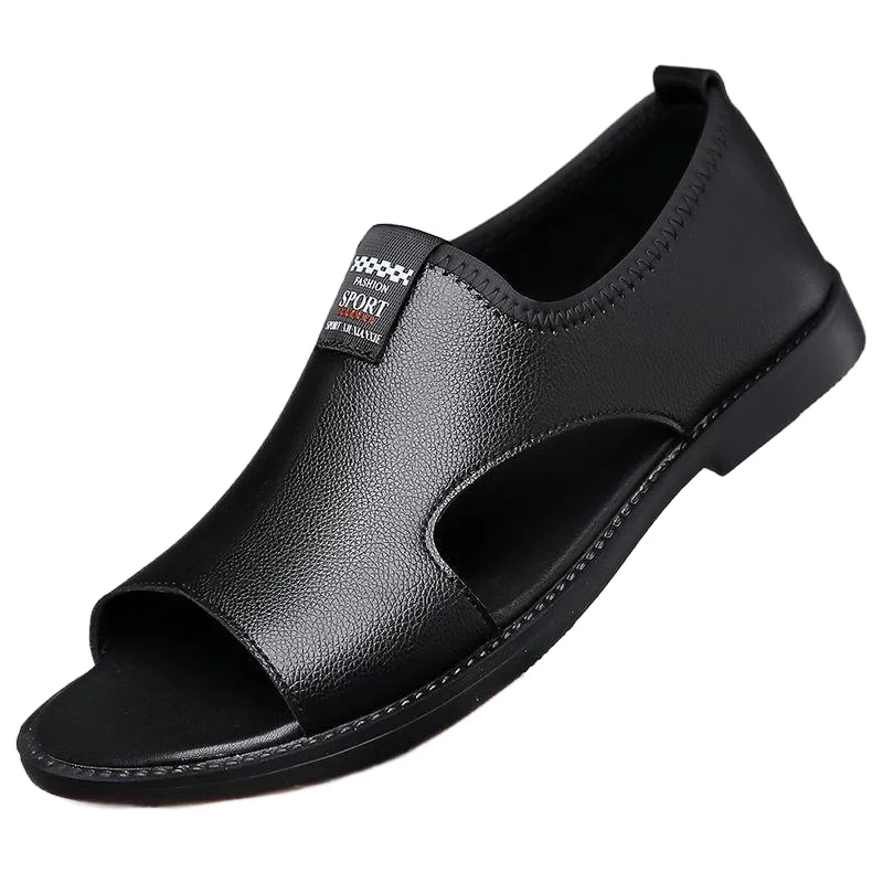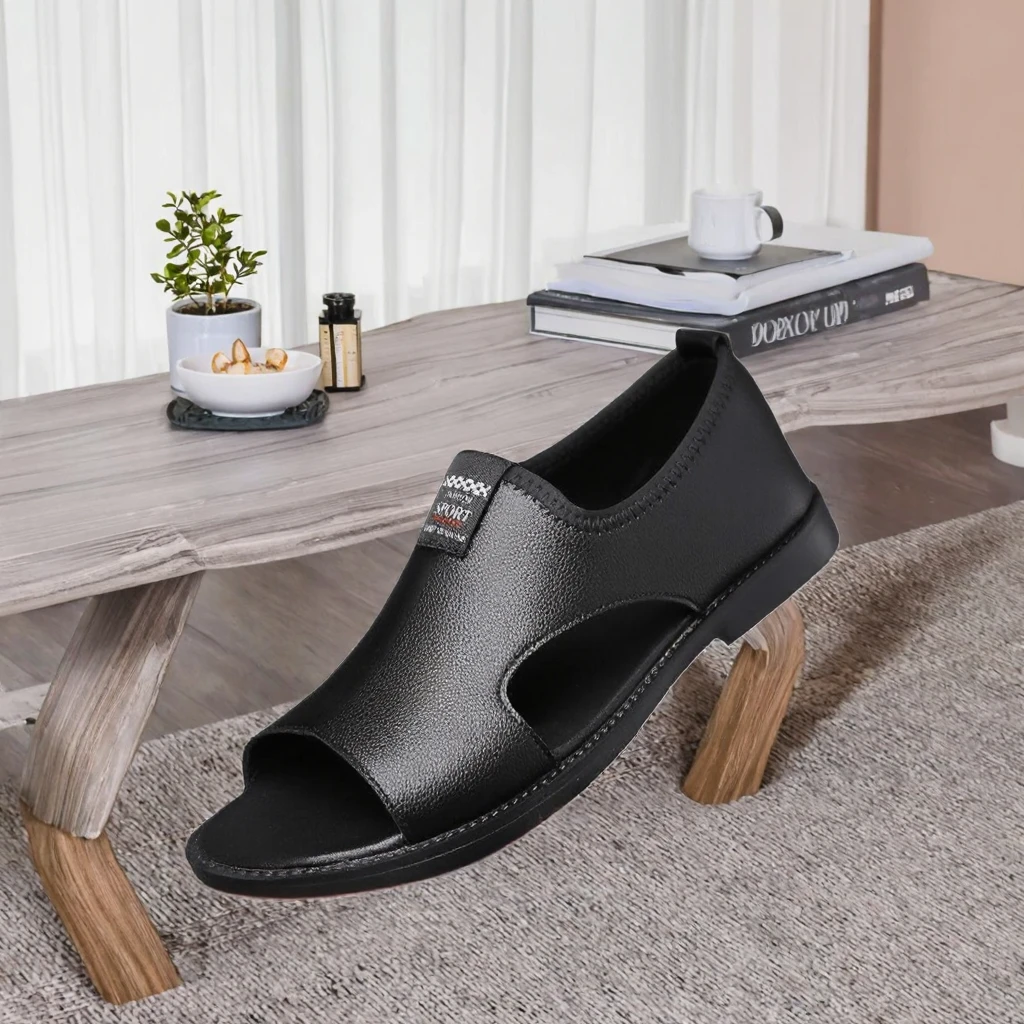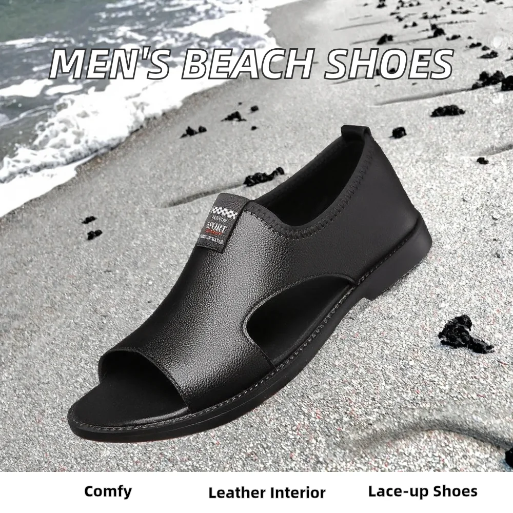 Men's Summer New Middle-Aged Outdoor Roman Beach Shoes with Leather Lining Half Slippers Lace-Up Closure Type Monk Strap Style