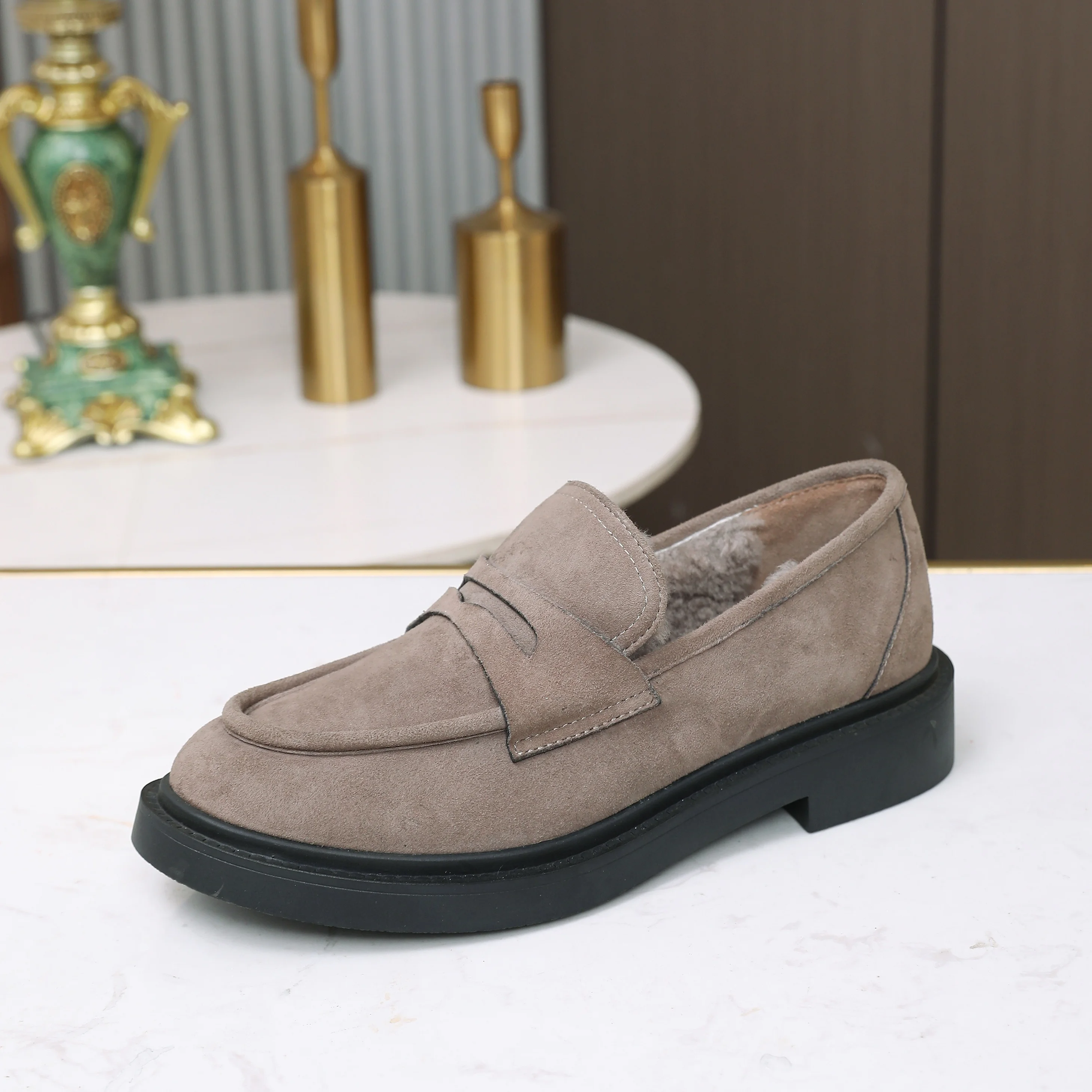 Autumn British Style Women's Low-Top Loafers New Large Size Small Sheepskin Shoes Cross-Border Slip-On Low-Heel Design