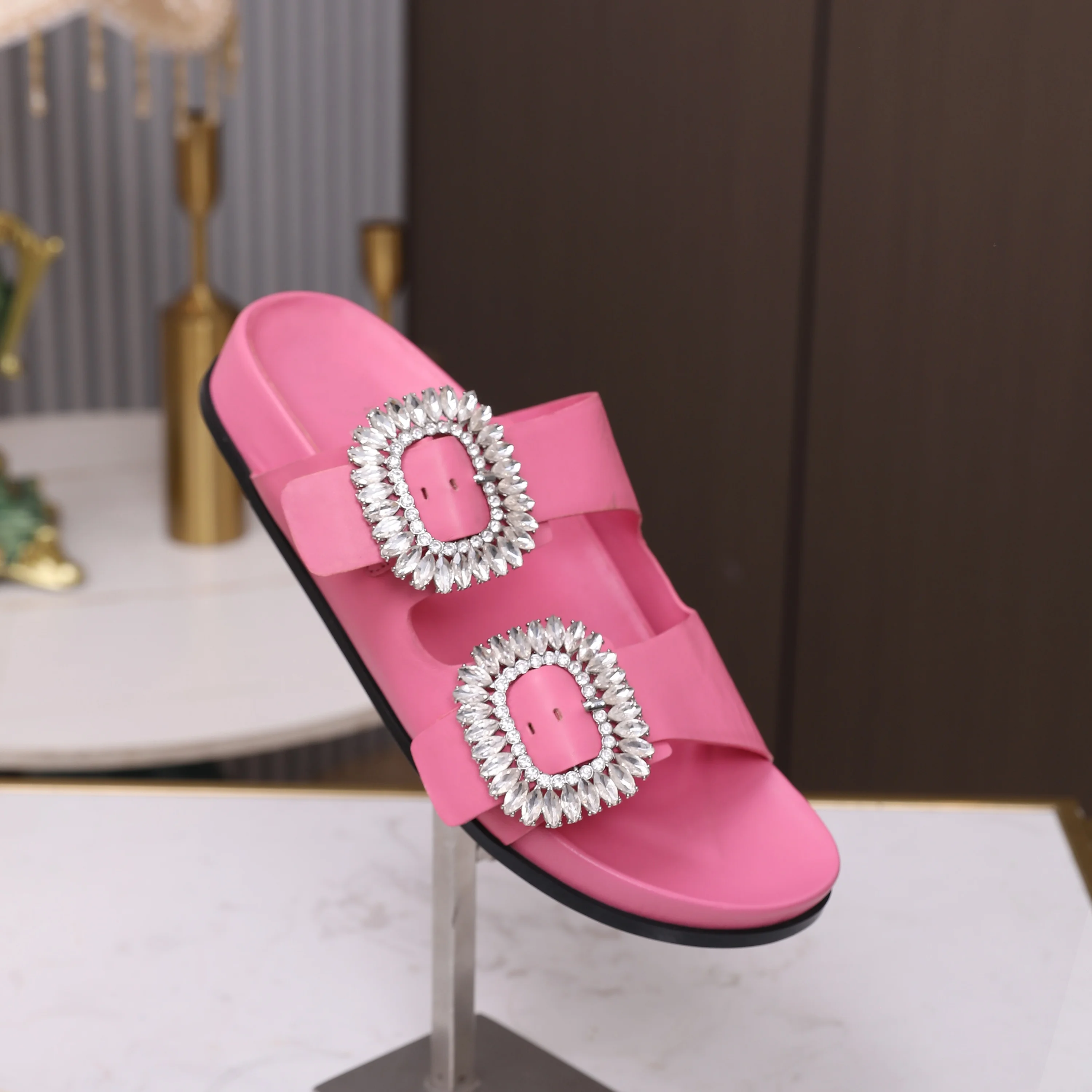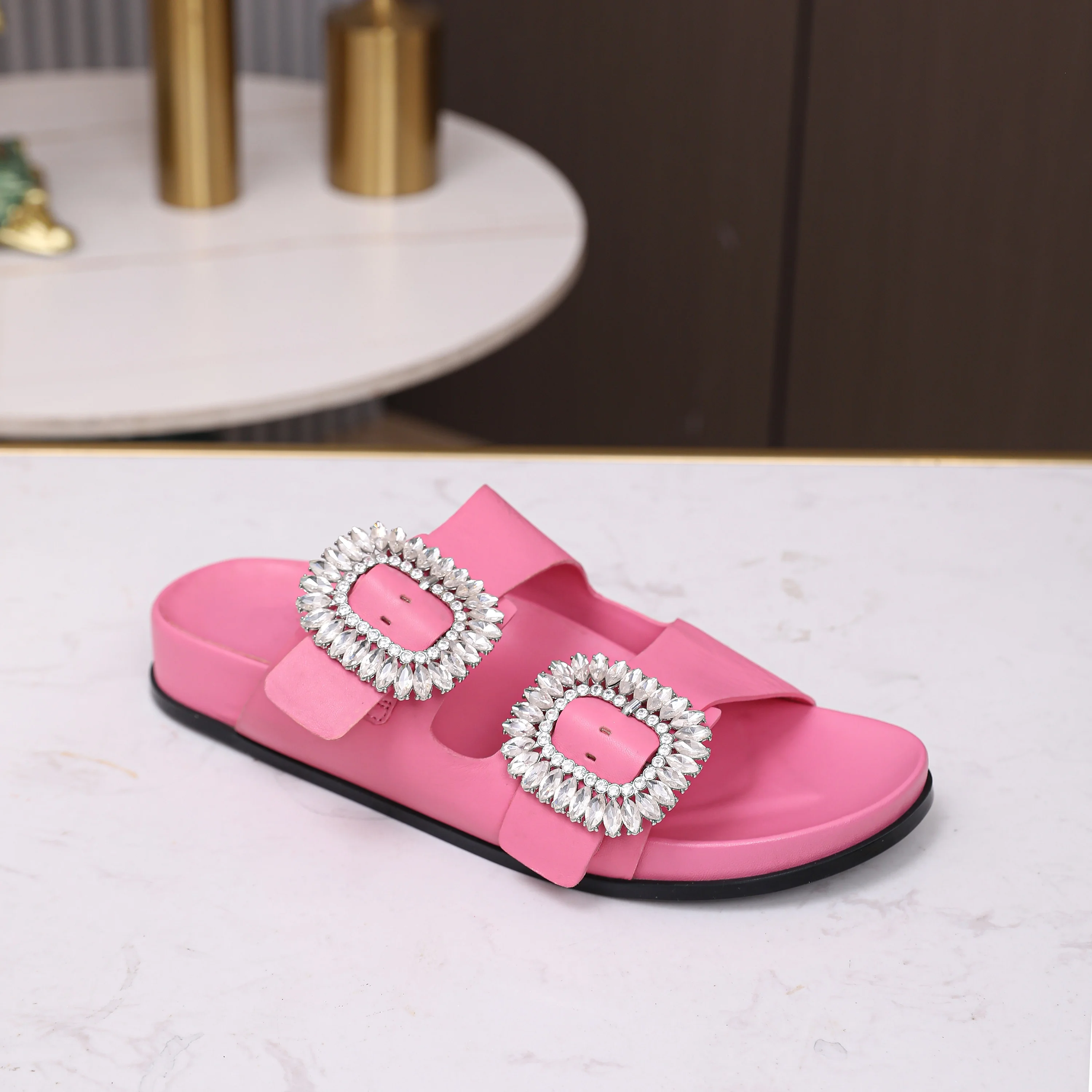 Latest Pink Peep Toe Flat Beach Shoes for Women Soft Fancy Fashion Fur for Slippers and Sandals