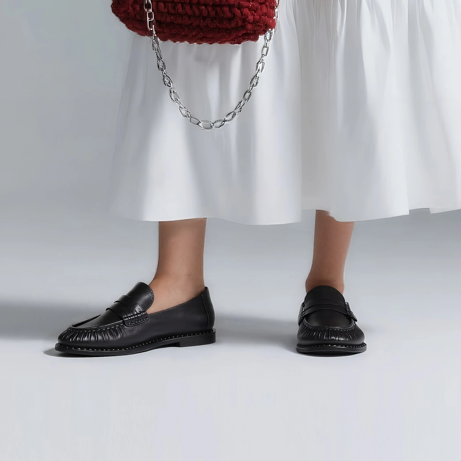 Women's Casual Leather Flat Loafers Comfortable Slip-On Flats with Genuine Leather Insole for Daily Wear Factory Direct Sales