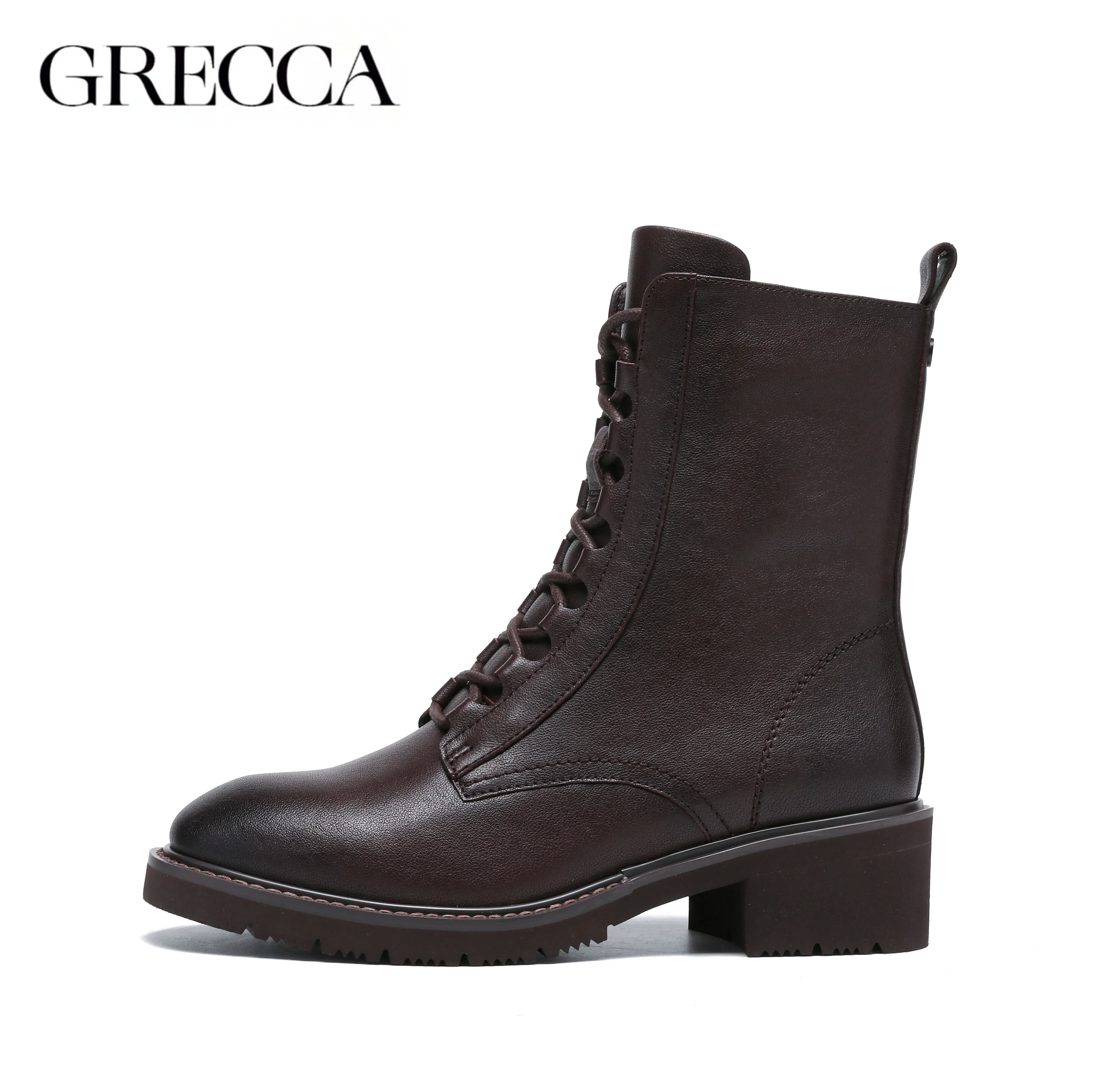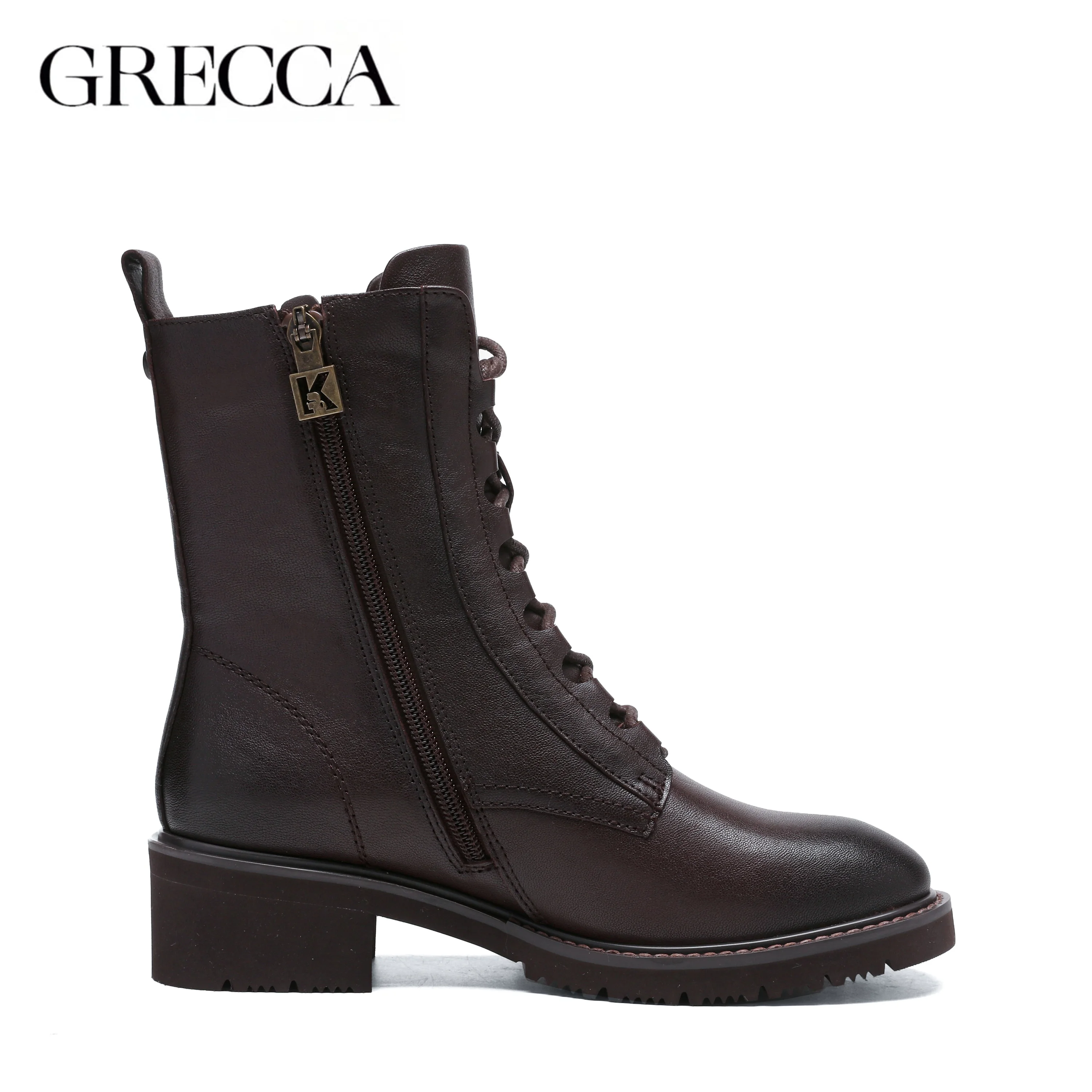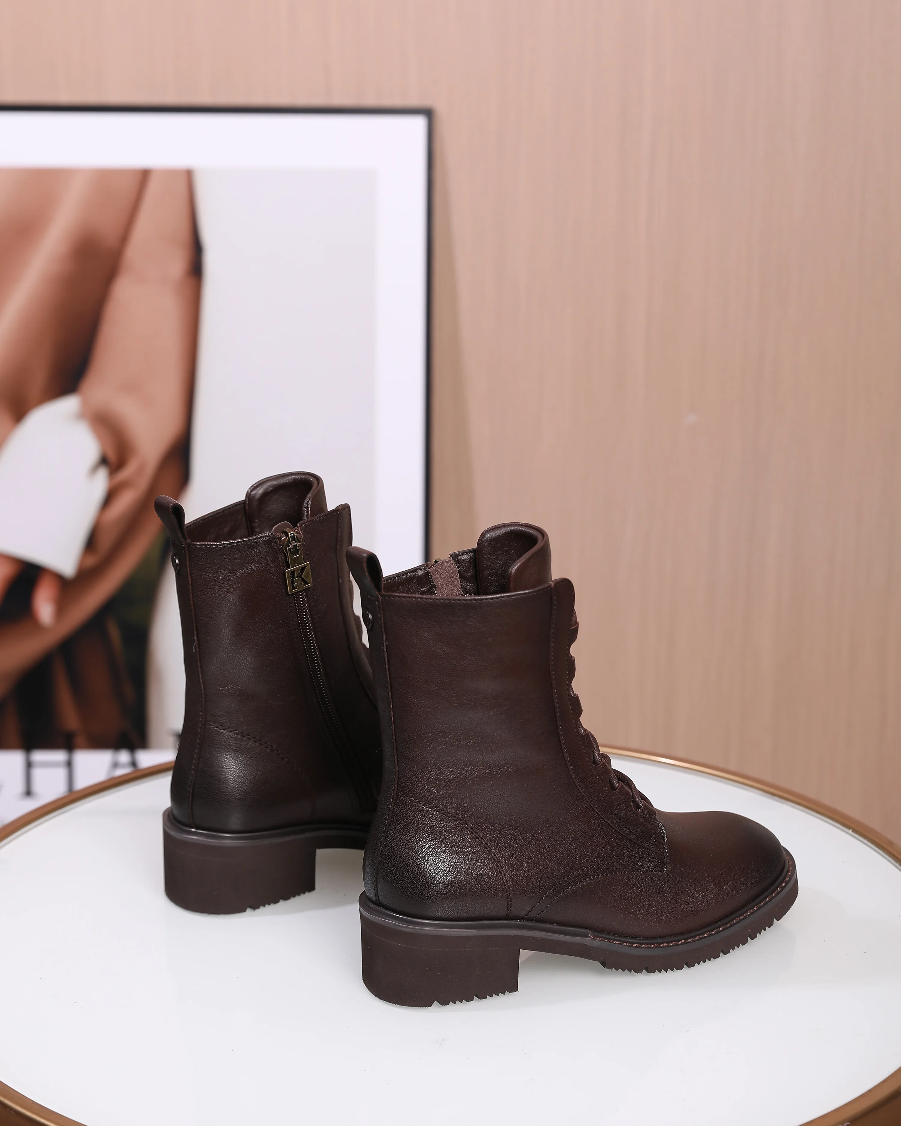 Wholesale Women's Lace-up Ankle Boots Waterproof Martin Brown Affordable In-stock Chunky Heel Combat Booties for Bulk Orders