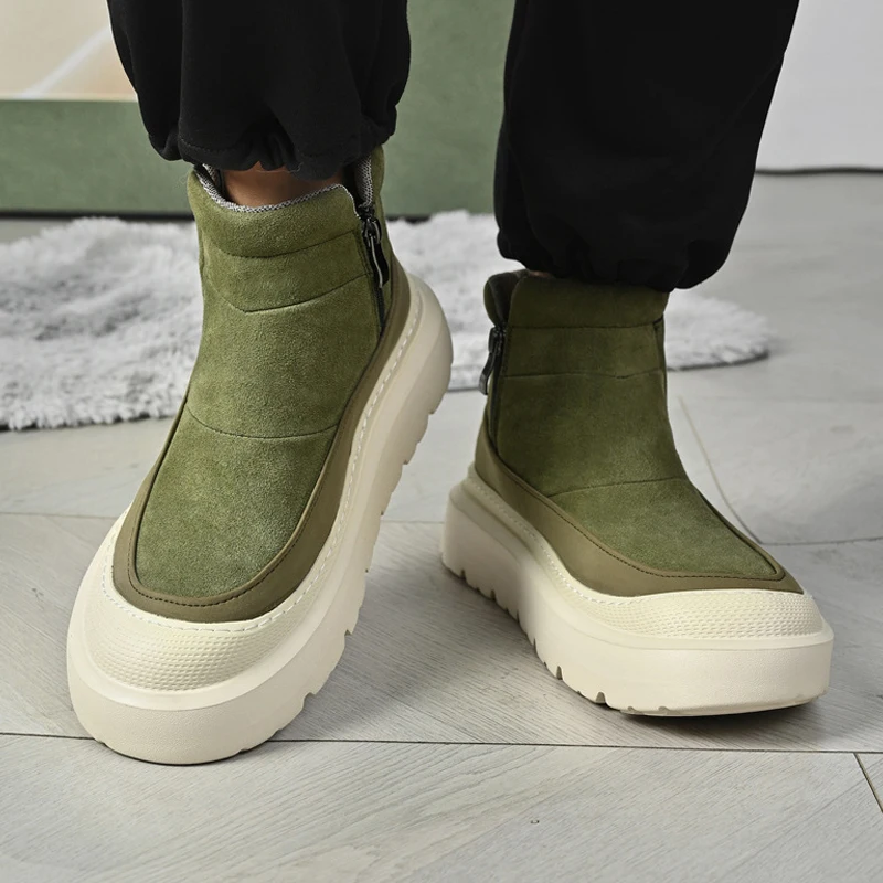 Casual Fashionable Men's Shoes Breathable Hook-And-Loop Zipper Design Portable Shoes Daily Work School Trendy High-Top Shoes