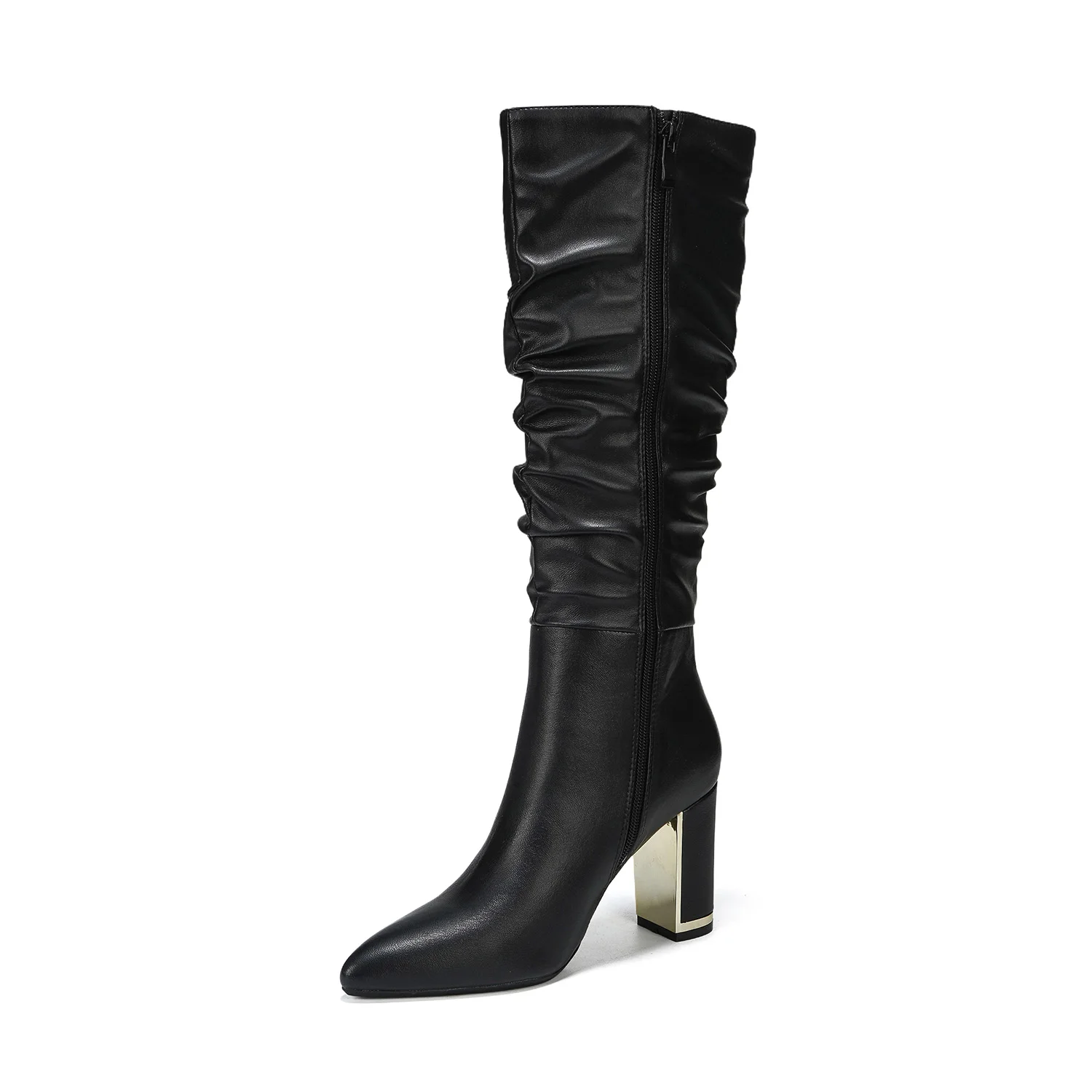 Women's Charming High-Heel Knee-High Boots Comfortable Crinkled Metallic Finish Height Increasing Feature Solid for Winter