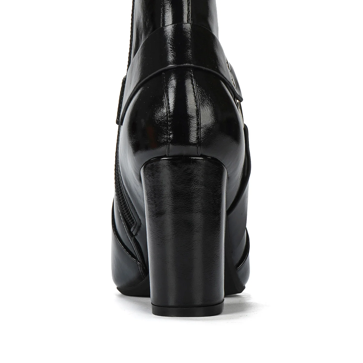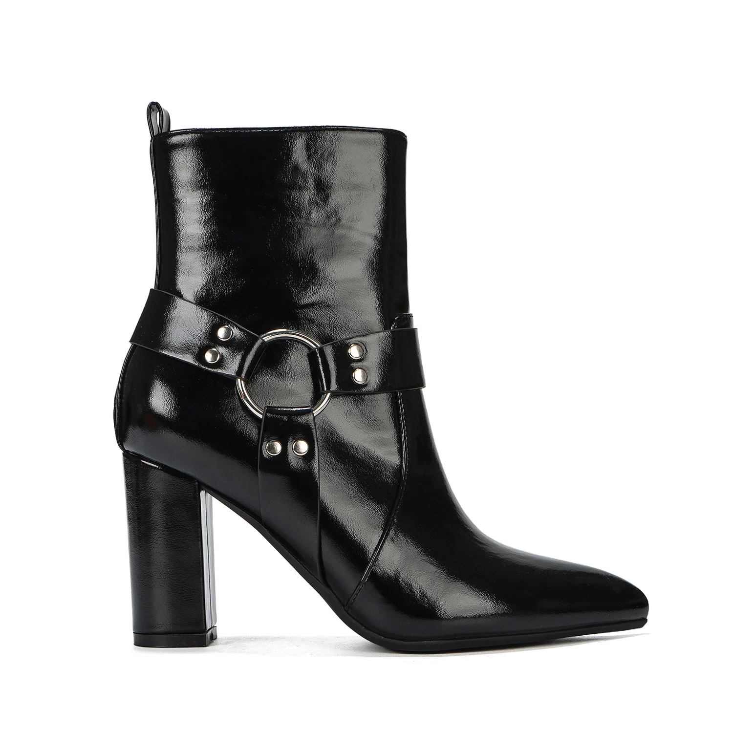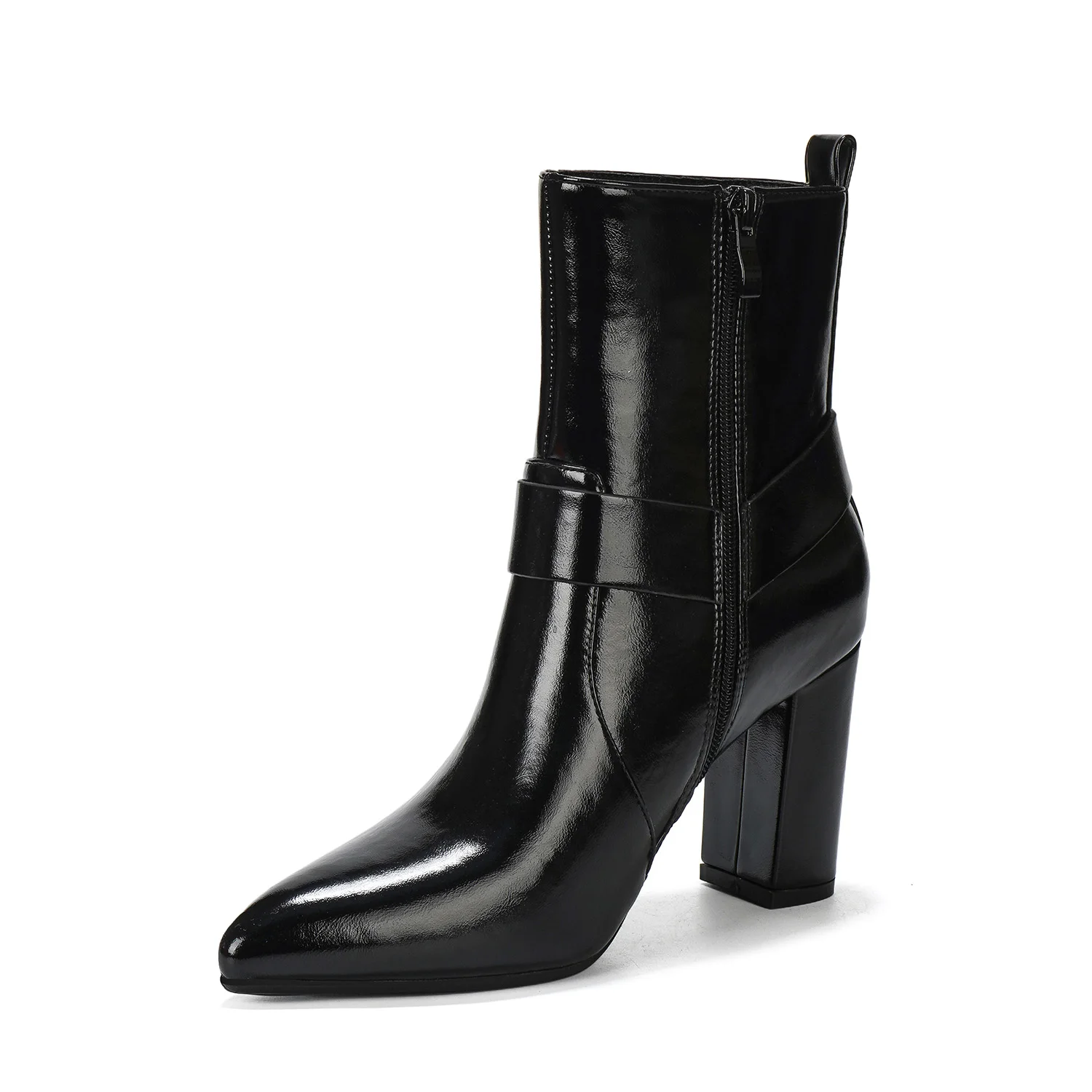 Chic PU Leather Ankle Boots Pointed Toe Zip Closure Comfortable Block Heel for Daily Party Scenes Versatile Buckle Strap