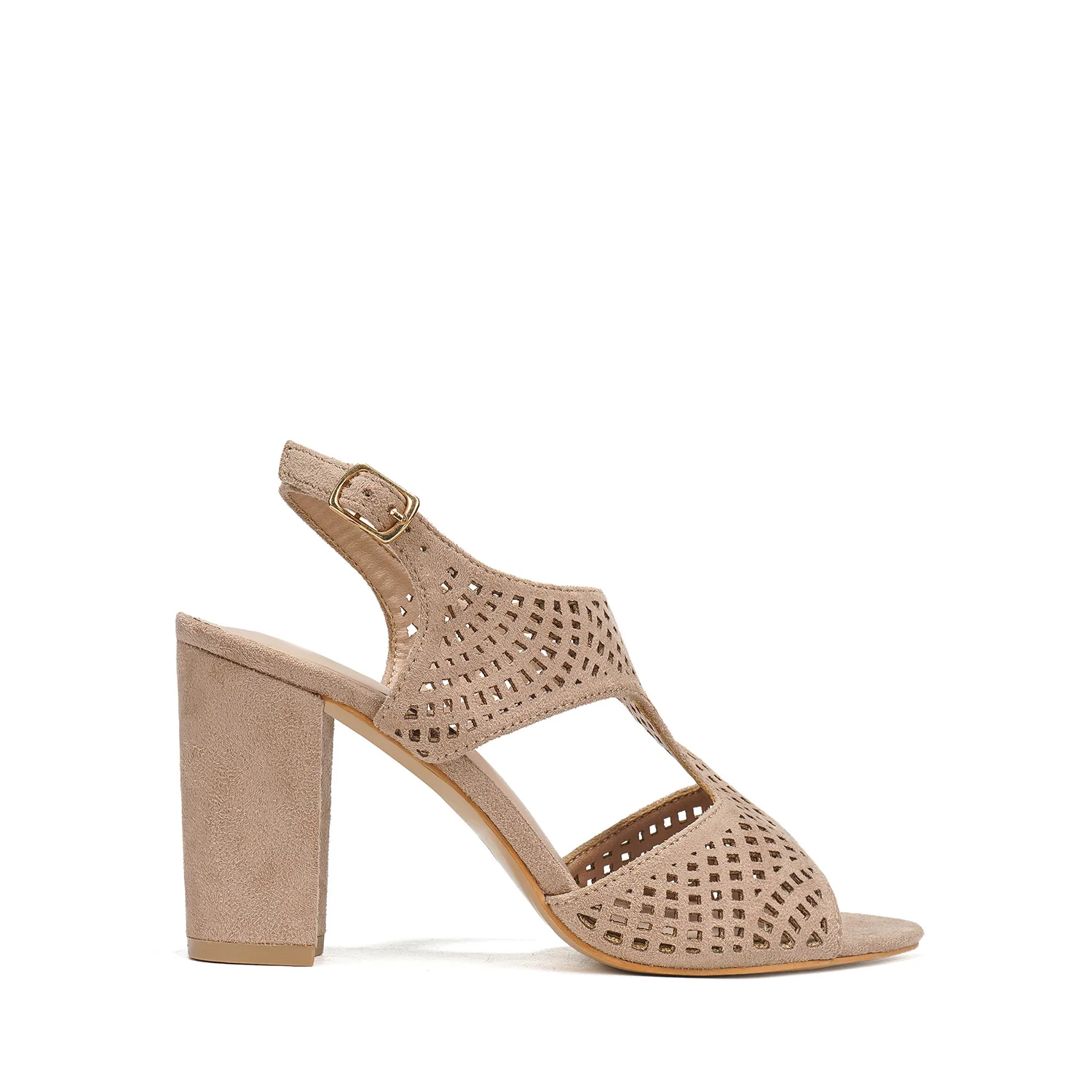 Women's Trendy Suede Laser Cut Block-Heel Slingback Sandals Light Weight Soft Casual & Summer Party Footwear Slip-On Closure