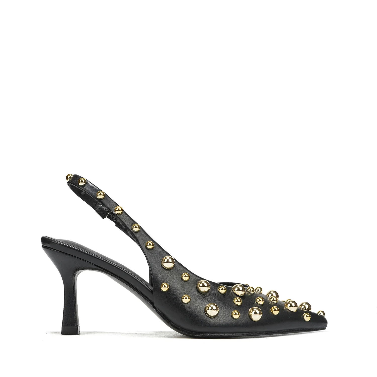 Women's Gold Stud Embellished Stiletto Slingback Pumps Trendy Summer Wedding Party & Evening Footwear Light Weight & Breathable