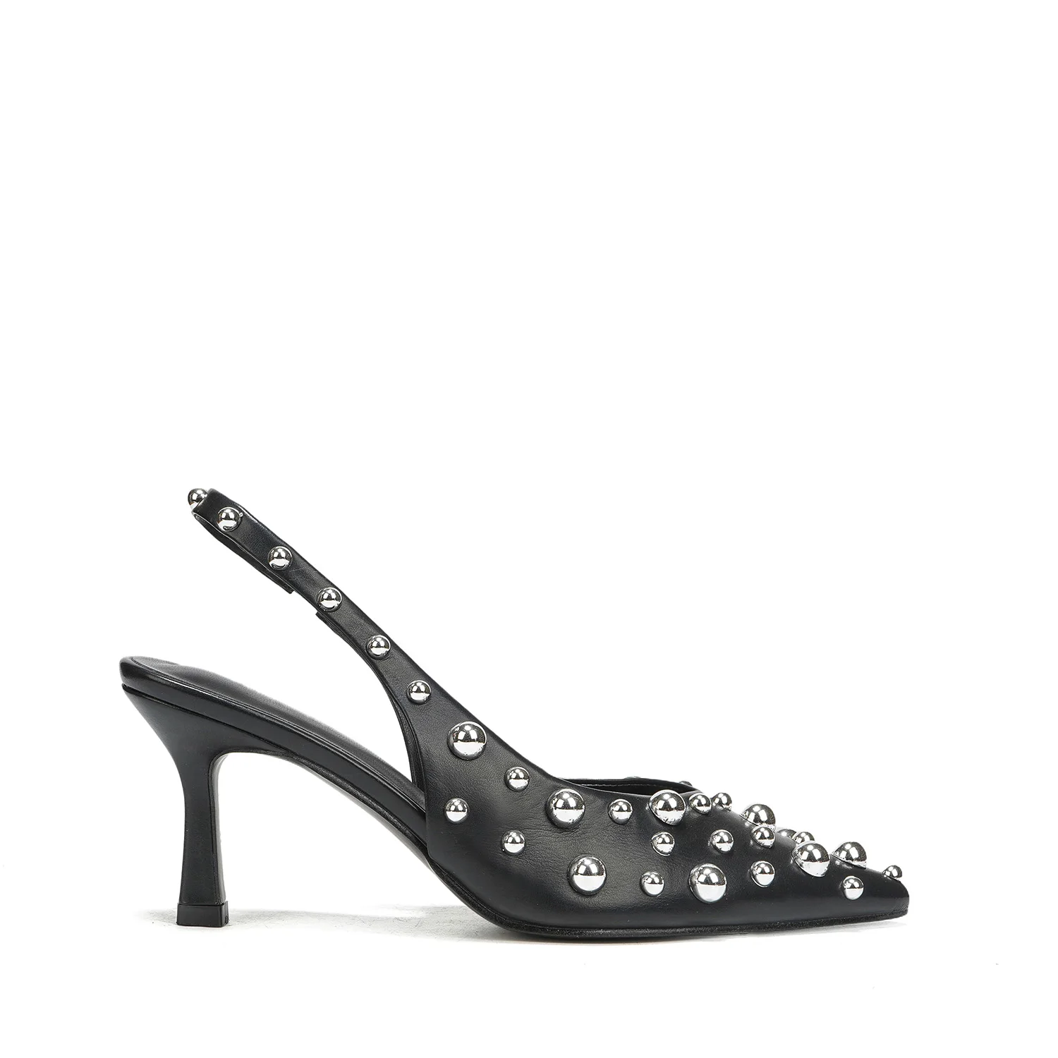 Women's Silver Trendy Summer Party Evening Stiletto Slingback Pumps Embellished Pointed Toe Heels Light Weight Breathable for