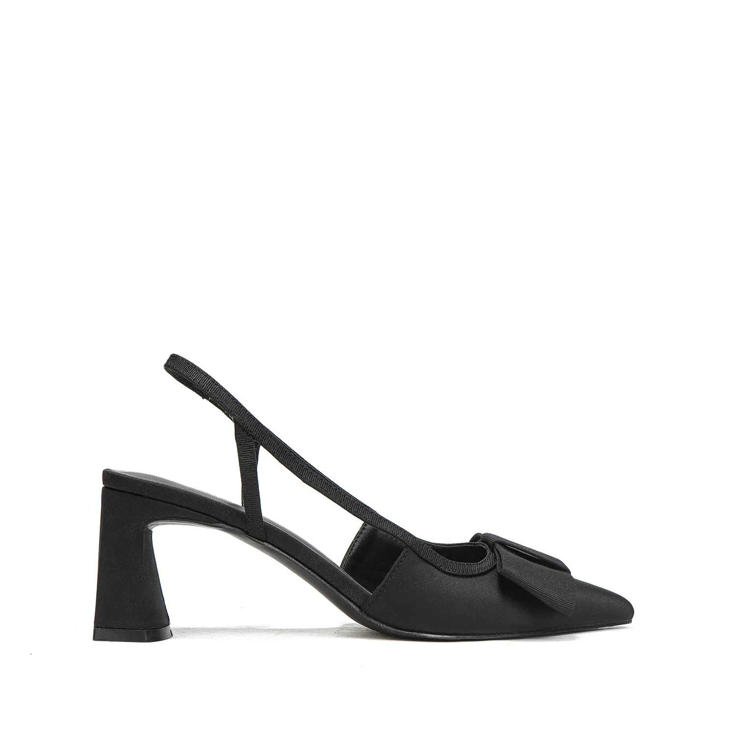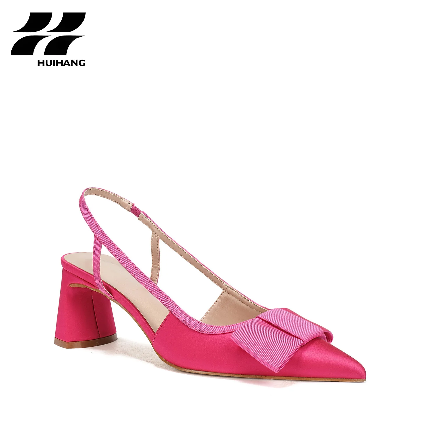 Women's Trendy Summer Party & Evening Slingback Pumps Satin Pointed-Toe Block-Heel Footwear with Bow Detail Wedding Shoes