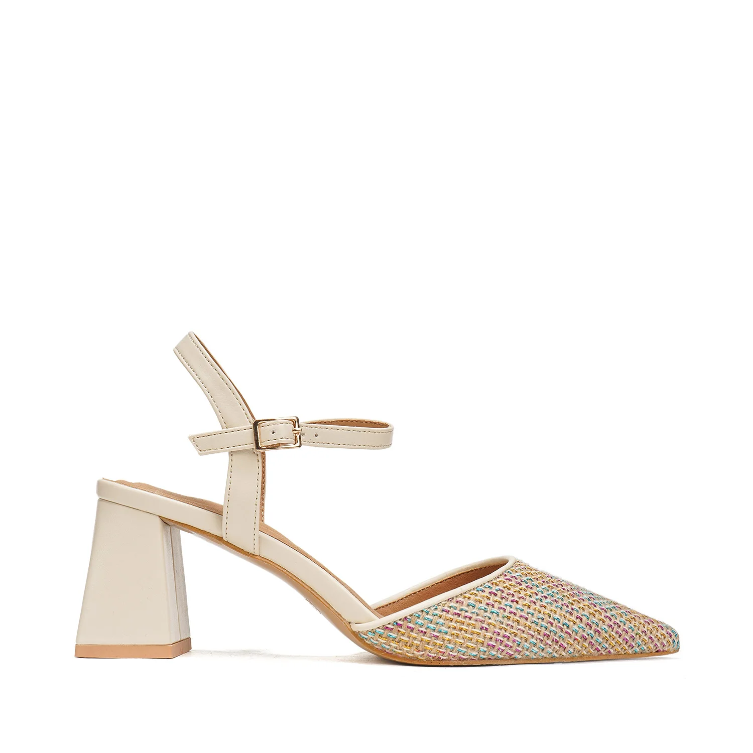 Women's Trendy Summer Wedge Heel Ankle Strap Sandals Woven Texture Pointed Toe Block for Party & Casual Footwear Club Style