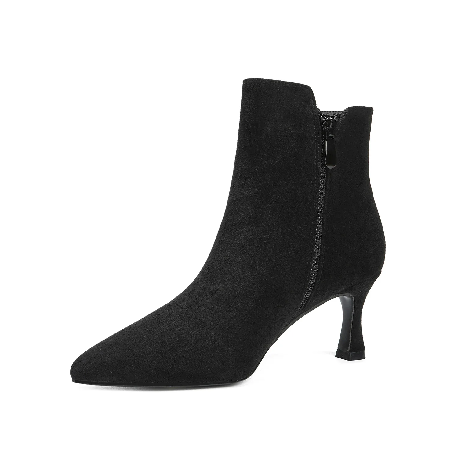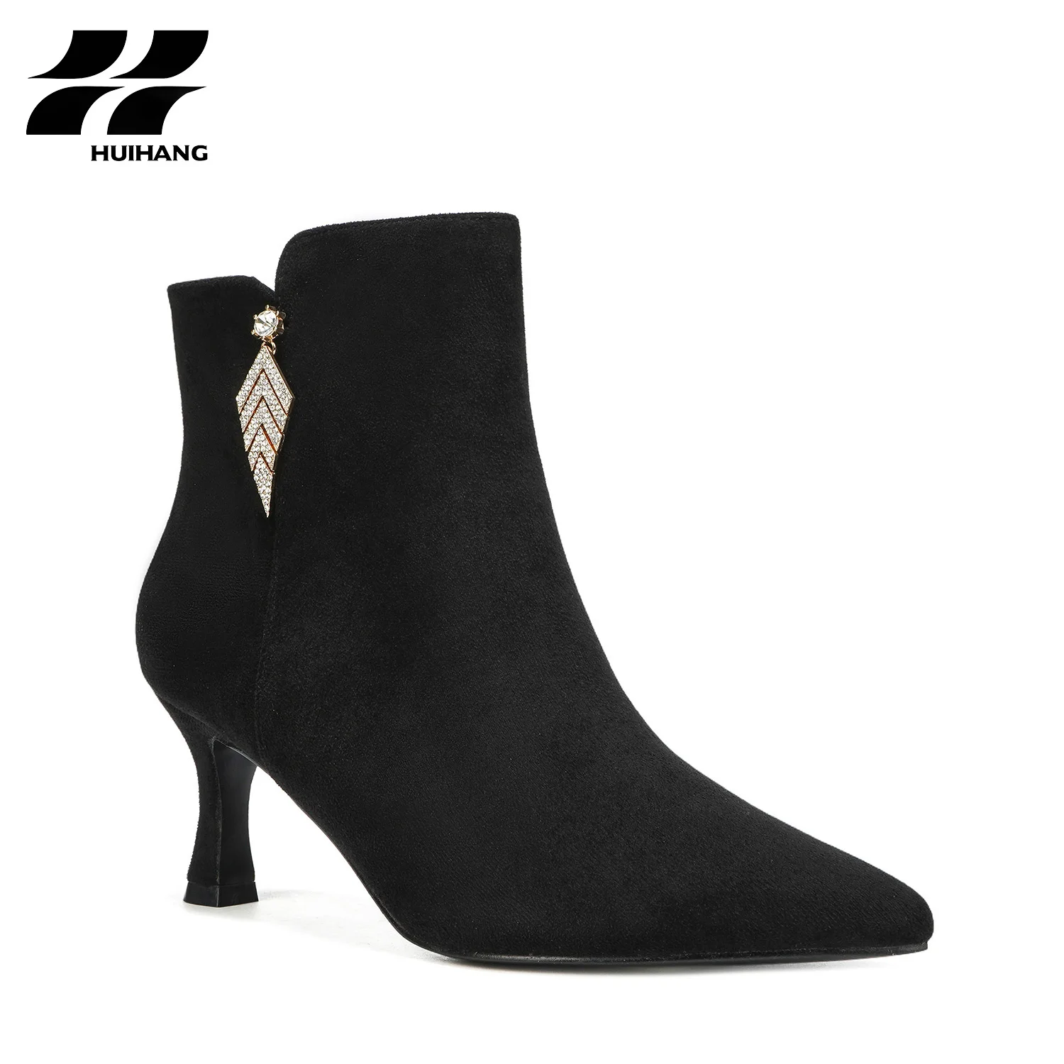 Women's Winter Suede Stiletto Ankle Boots with Rhinestone Pendant Trendy Pointed-Toe Zipper Closure for Party or Evening