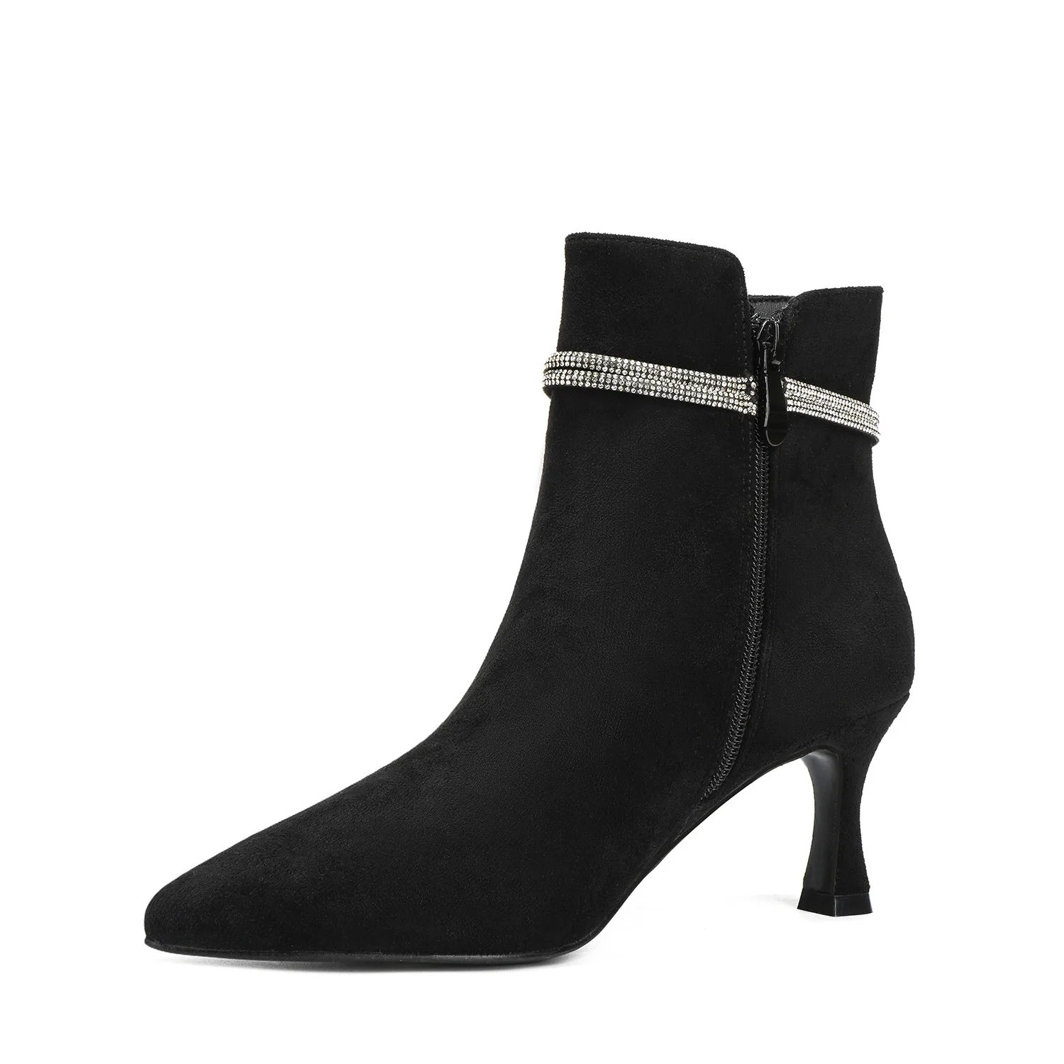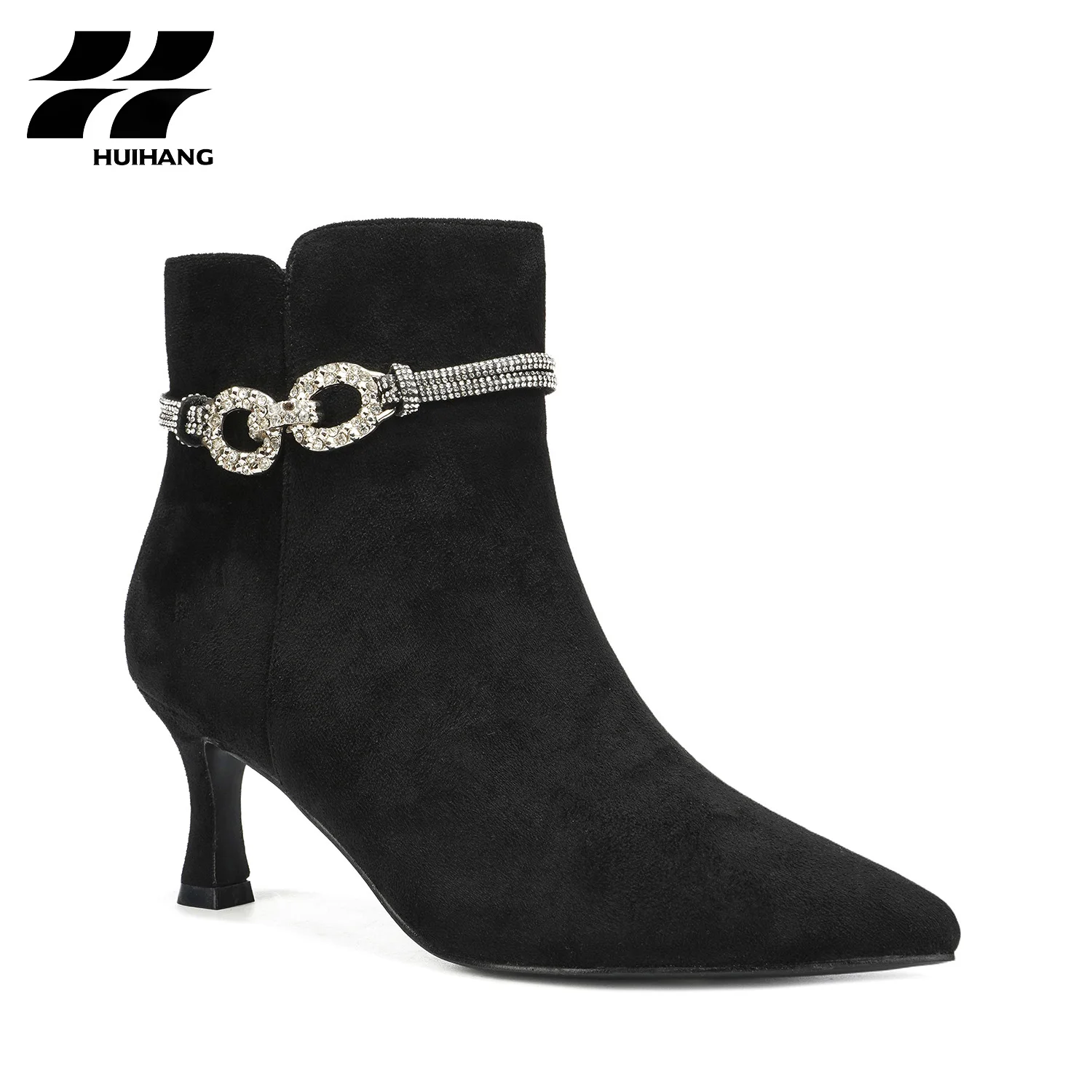 Women's Trendy Winter Stiletto Ankle Boots Suede Pointed-Toe with Rhinestone Chain Strap PU Insole for Fall/Winter Party Evening