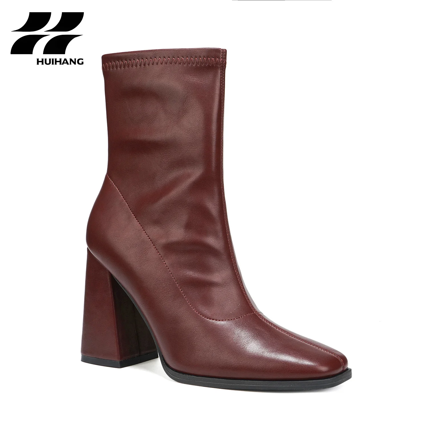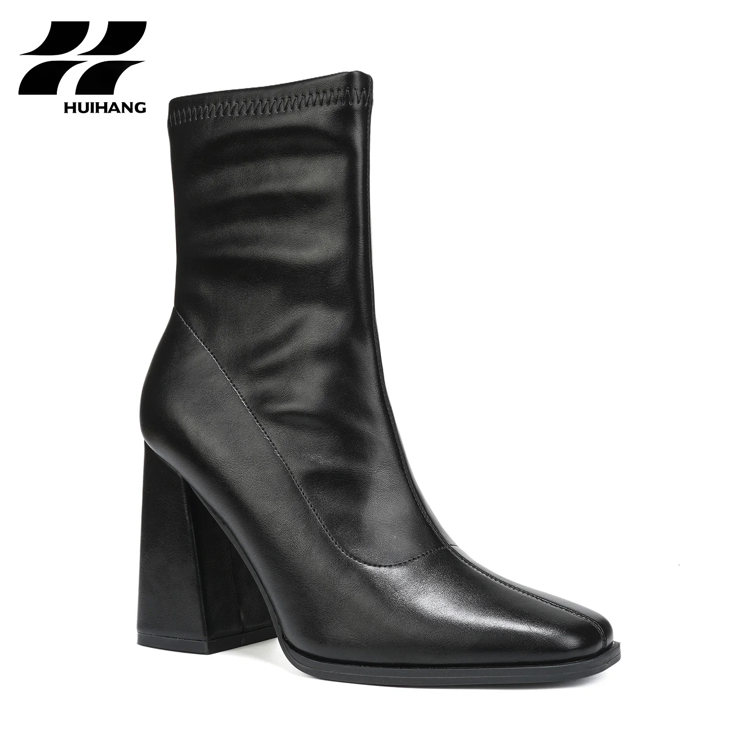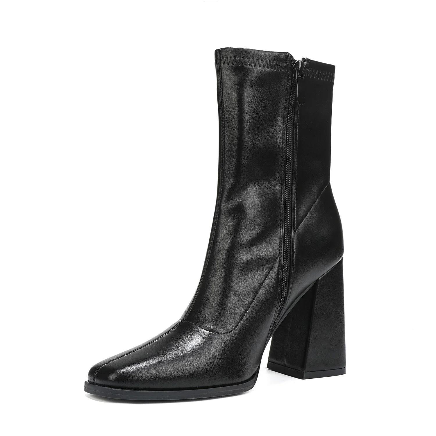 Women's PU Leather Ankle Boots with Square Toe Block Heel Height Increasing Zip Closure Trendy Fall/Winter Party Casual Footwear