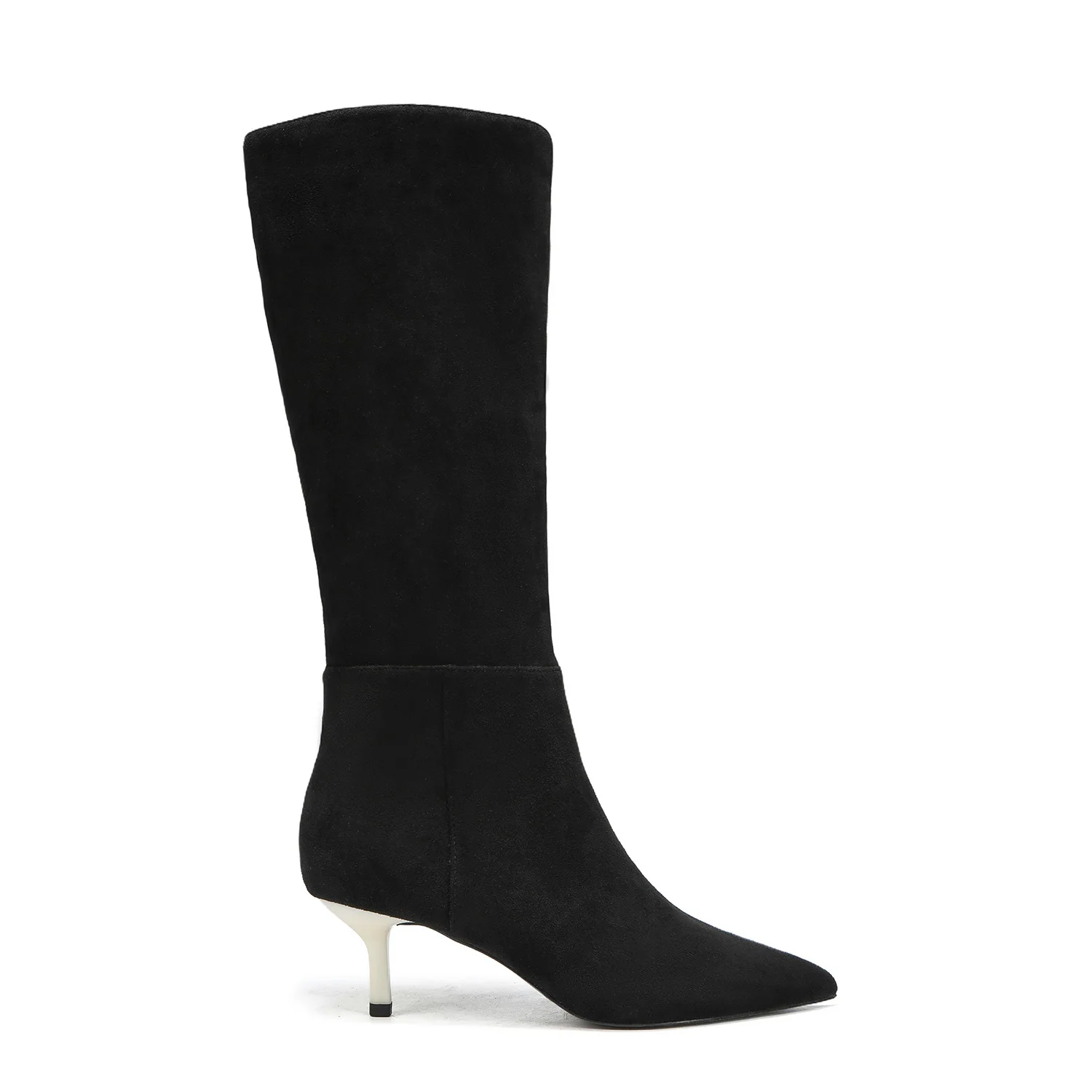 Women's Fashion Black Suede Knee-High Stiletto Heel Boots Autumn/Spring Western Snow Platform Boots with Soft Rubber/PU Insole