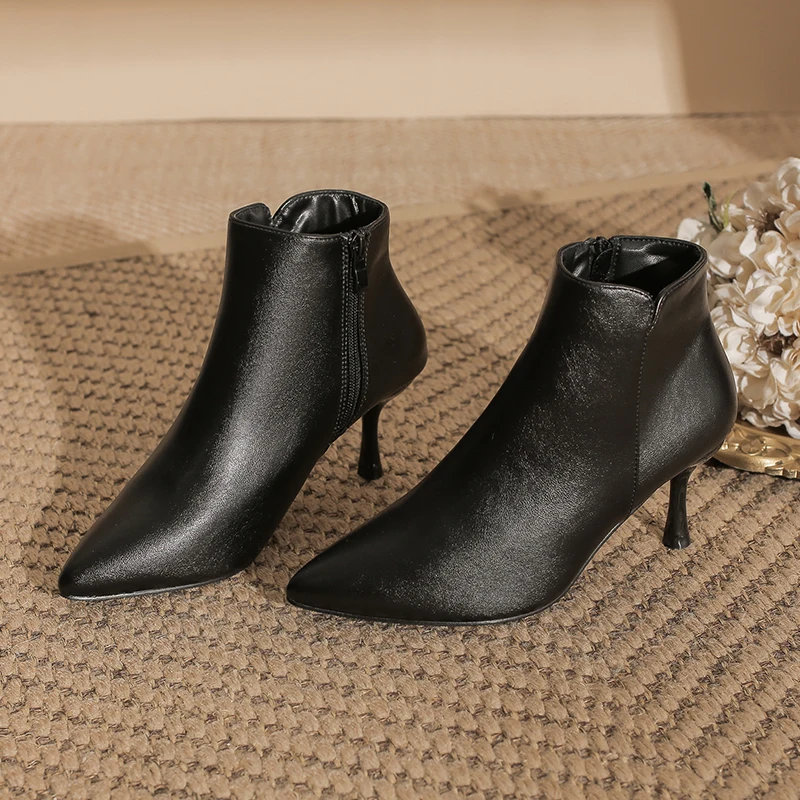Formal Black Microfiber Ankle Boots with Pointed Toe & Stiletto Heel, 5CM/7CM Heel for Autumn & Winter
