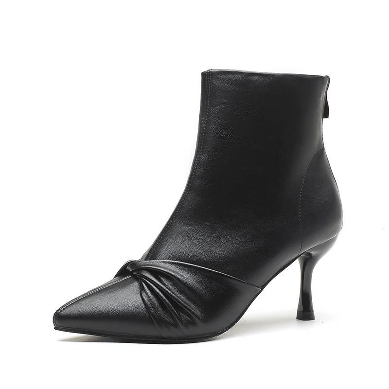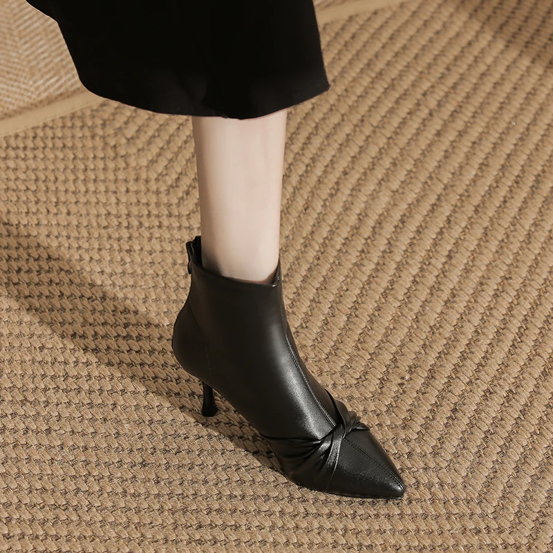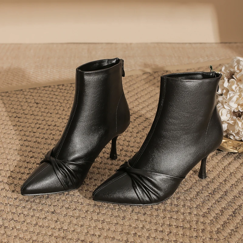 Formal Black Microfiber Ankle Boots with Pointed Toe & Stiletto Heel, Knot Detail, 5CM/7CM Heel for Autumn & Winter