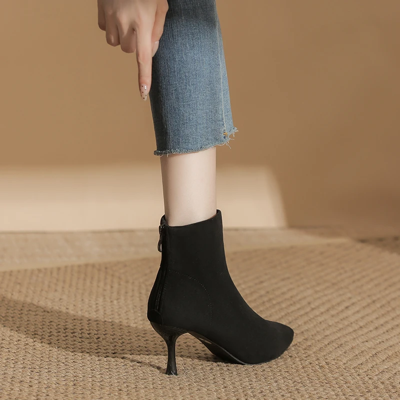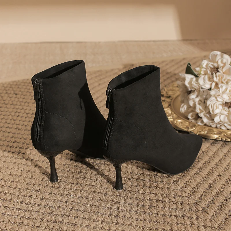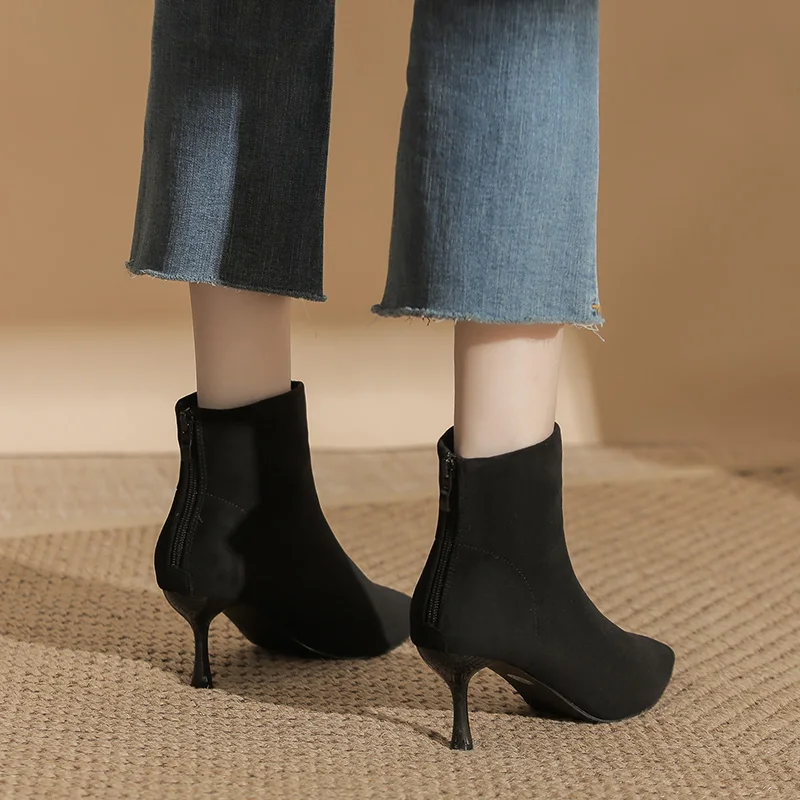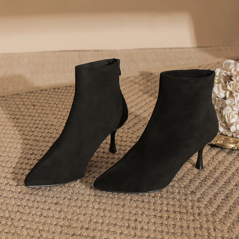 Elegant Black Suede Ankle Boots with Pointed Toe & Stiletto Heel, 5CM/7CM Heel for Autumn & Winter