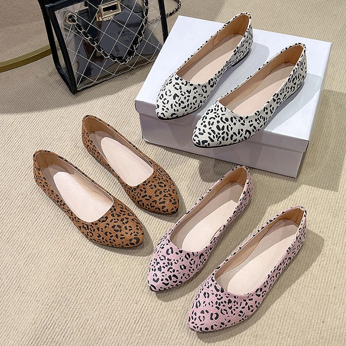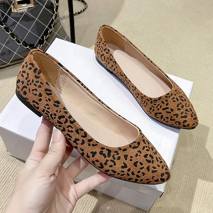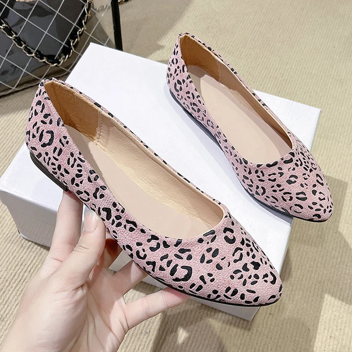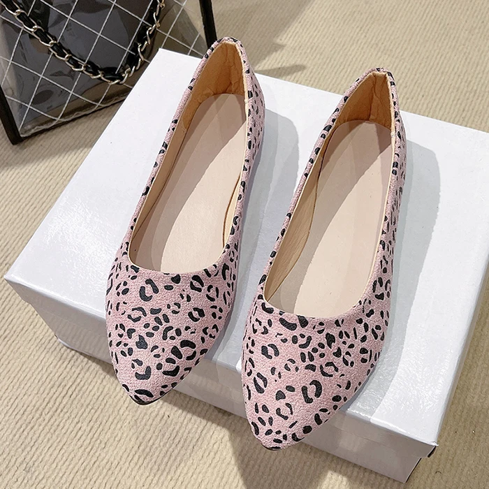 Big Size Wholesale Women's Casual Flat Shoes Wholesale Light Ballet Flats Leopard Pattern Slip-On Comfortable Ballerina Shoes