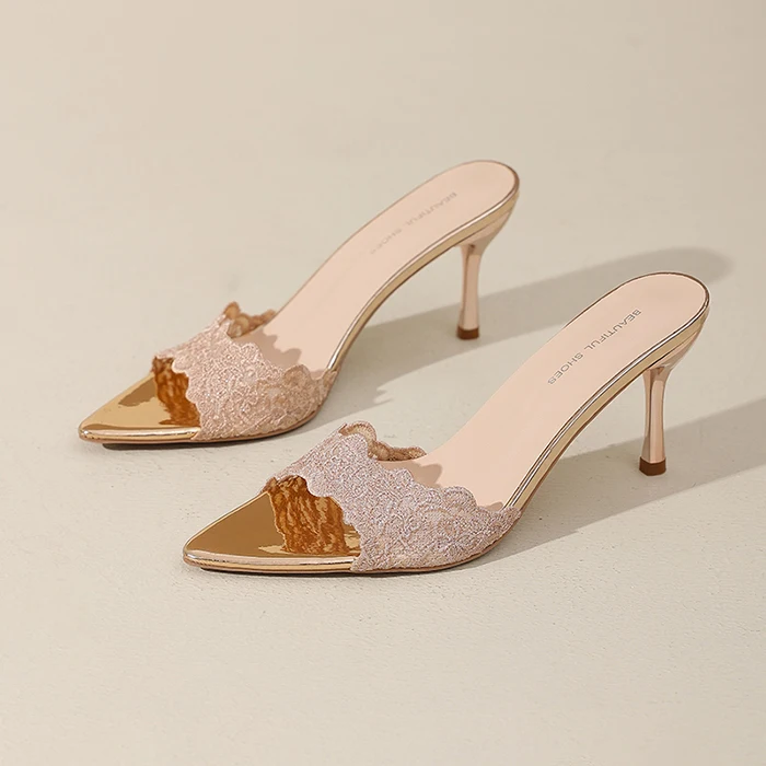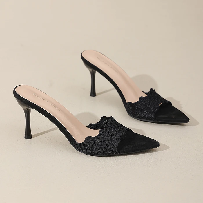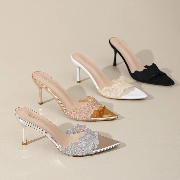 Women's Fashionable Summer Lace Plush Breathable Design Stiletto Heel Pointed Toe Trendy Styles Sold Directly Source Factory