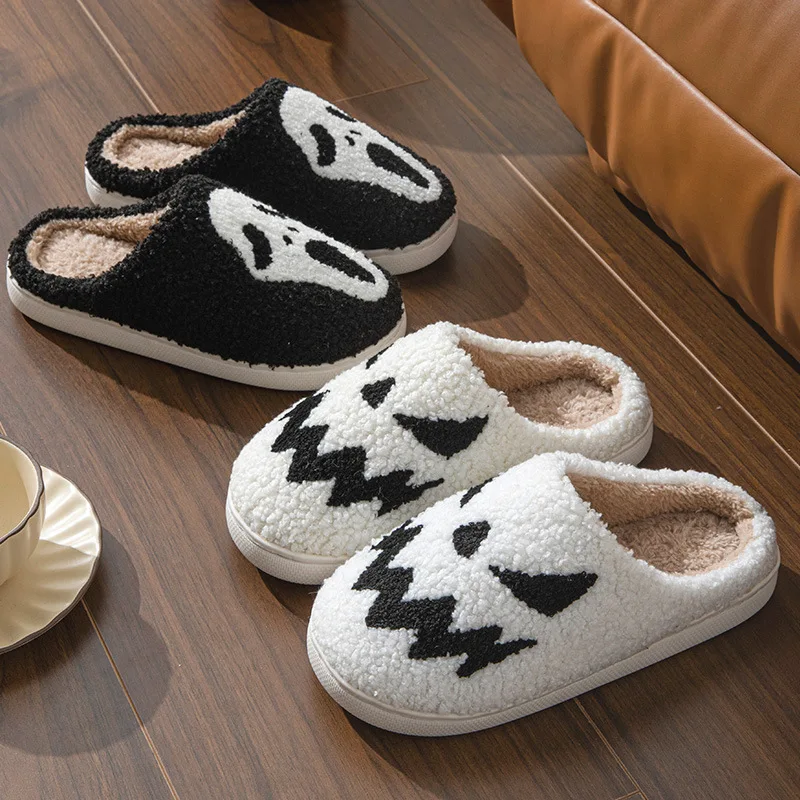 New Fashion Halloween Indoor Winter for Slippers Warm Plush Closed-Toe Design Anti-Slippery Comfortable for Couples Home Use