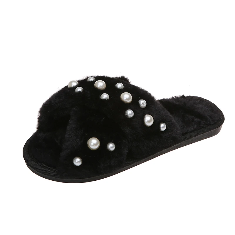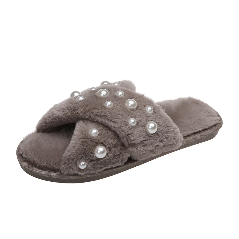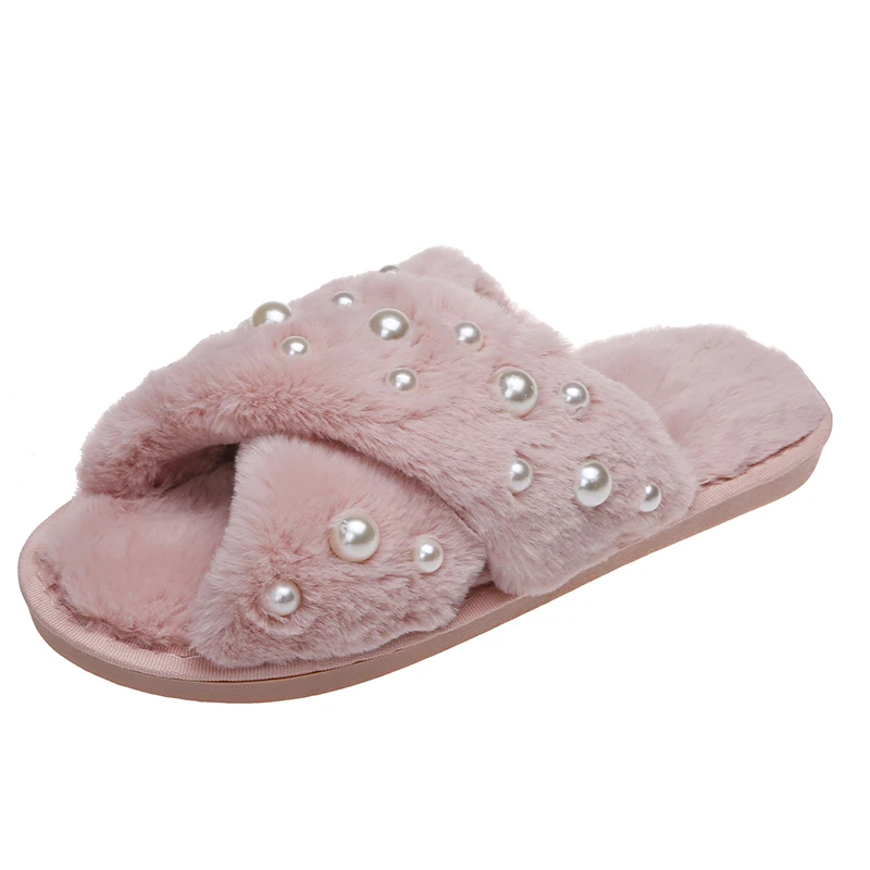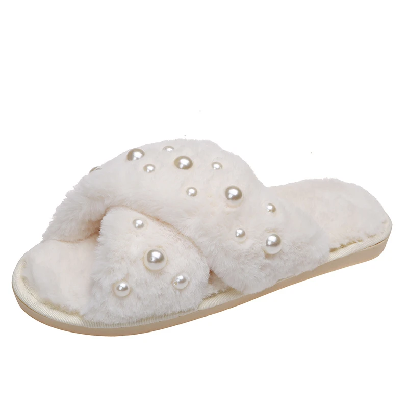 Hot Selling Women's Winter Indoor for Slippers Comfortable Soft Warm Plush Non-Slip Open Toe Anti-Slippery Cute Fur Pearl Blink