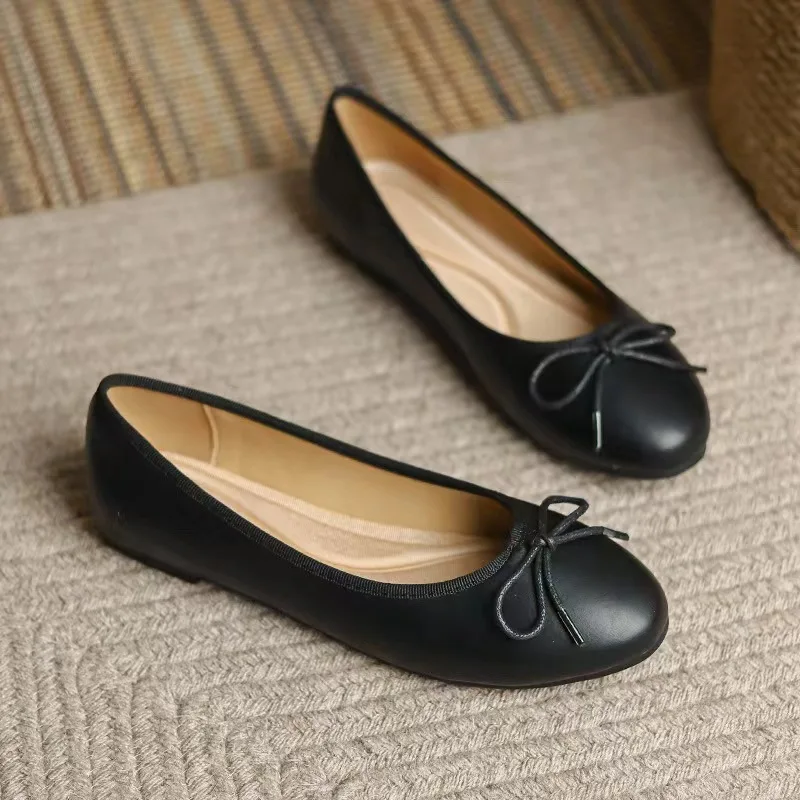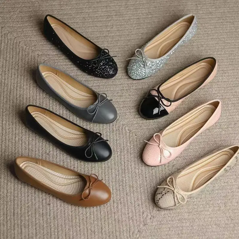 2026 Spring New Fashionable Casual Flat Shoes Ballet Flat Shoes Bow Head Shallow Mouth Design Solid Rubber for Outdoor Travel
