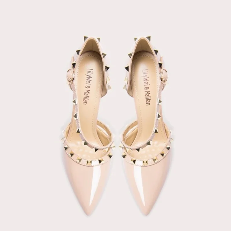 New Elegant Sexy Pointy Head Fat Feet Wide Size Fine Heels Shoes Women's Thin Heel Sandals Rivet High Heels