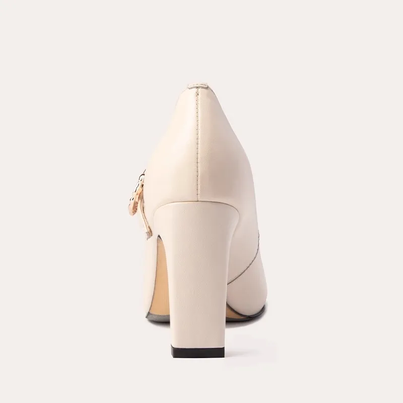 Lily Wei Hot Selling Women's Pumps Square Toe Shallow Mouth Cowhide Upper One-Strap Rhinestone Buckle Thick Heel Single Shoes
