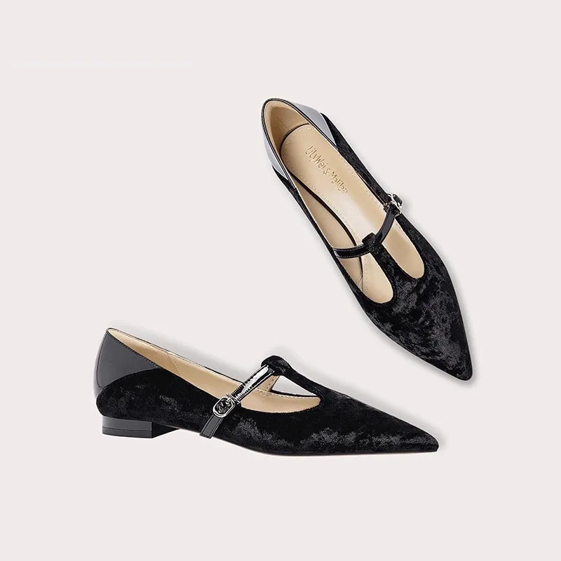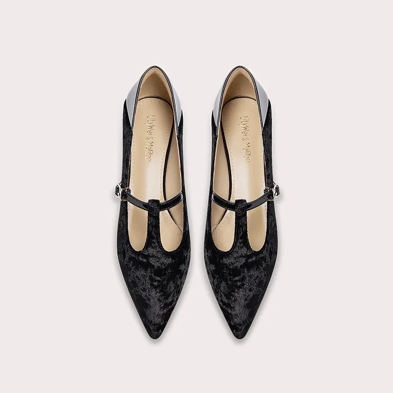 Lily Wei New Dressy Business Casual Pointed Toe T-Straps Flats Shoes Women's Summer Customized Comfortable Style Light