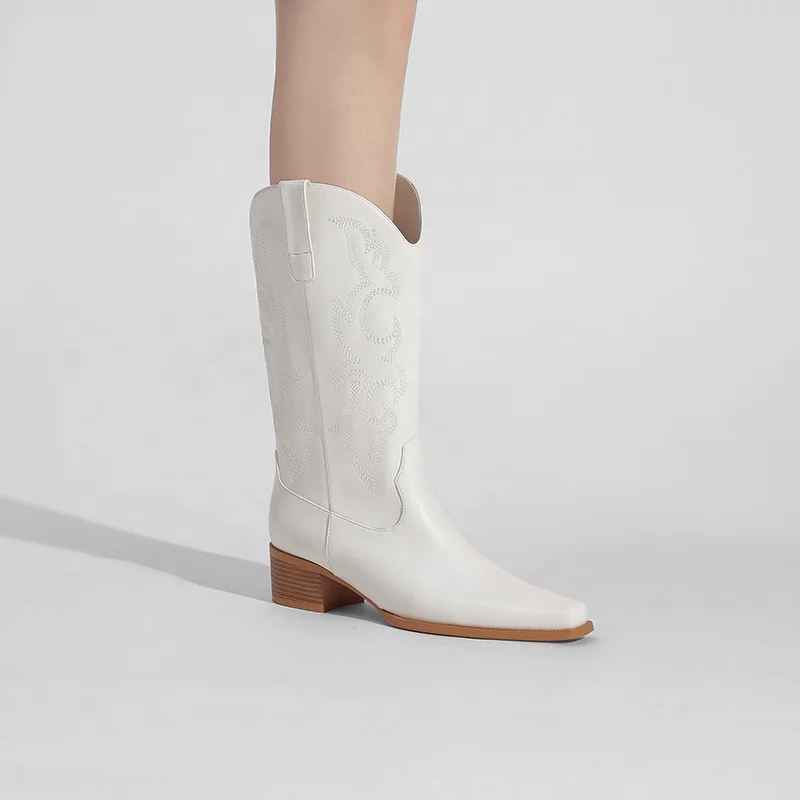 Women's Western Cowgirl Boots with Embroidery Square Toe High Heel-Autumn/Winter/Summer Comfort Mid-Calf Cowboy Boots