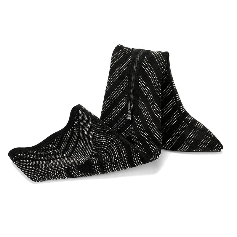 Custom Black Rhinestone Over-the-Knee Stiletto Boots for Women Pointed Toe Stretch High Heels Woman Boots Thigh High Boots