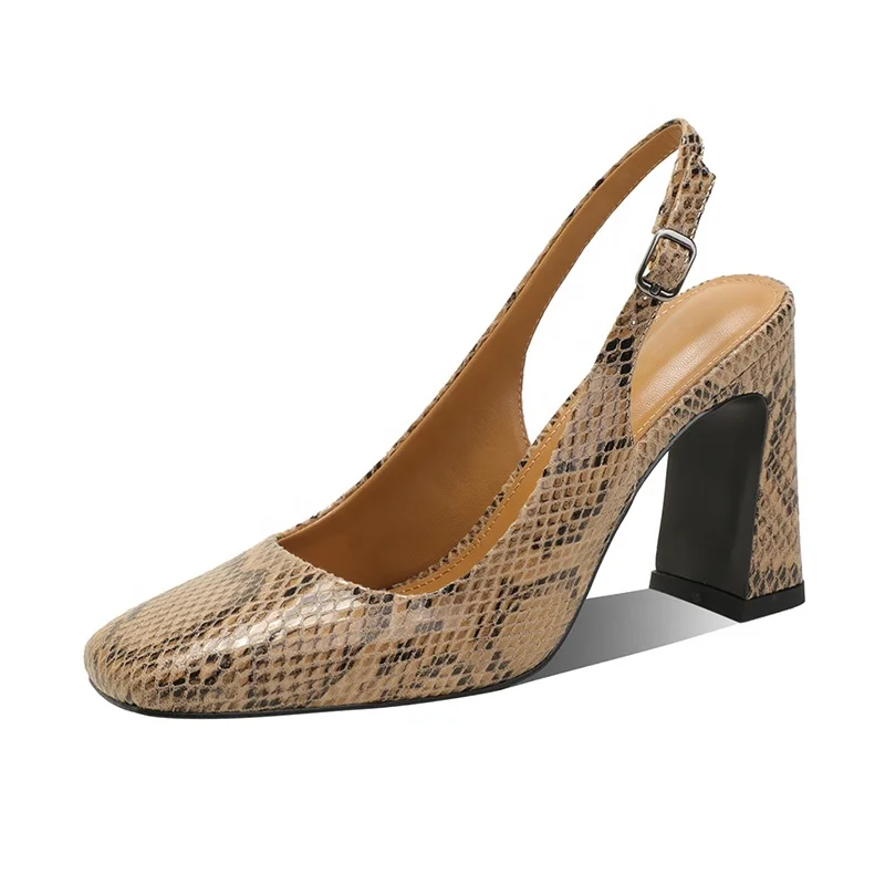 Women's Elegant Square Toe Slingback Pumps Comfortable Block Heel Dress Shoes for Summer and Autumn Customizable
